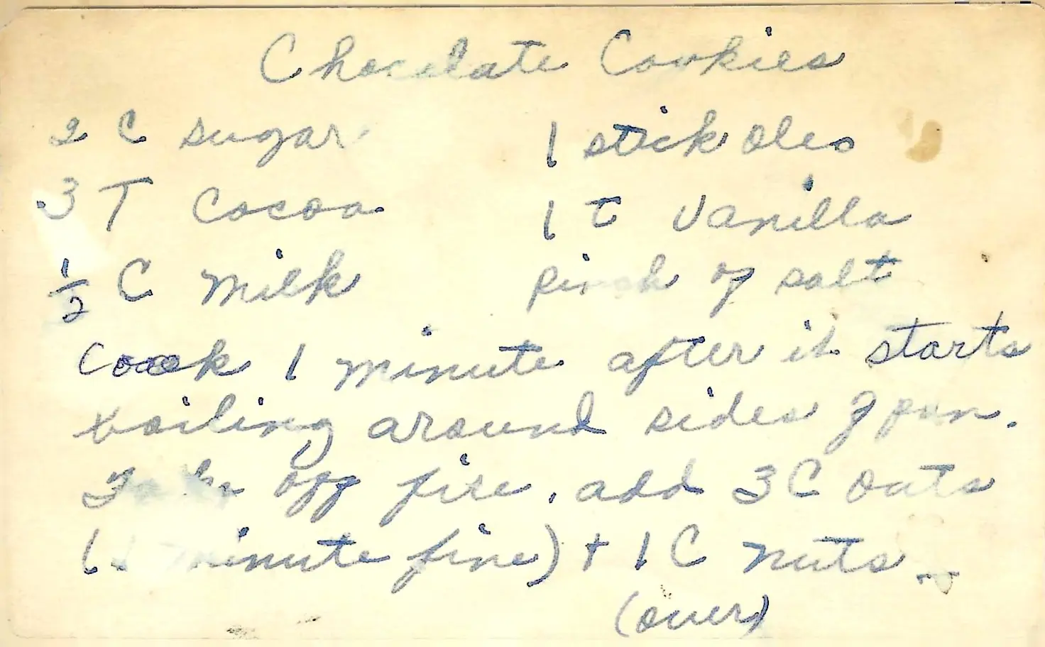 A classic and quick recipe from Clarice for no-bake chocolate oatmeal cookies. This simple stovetop method combines a boiled cocoa-sugar syrup with oats and nuts to create chewy, fudgy cookies that set up on wax paper.