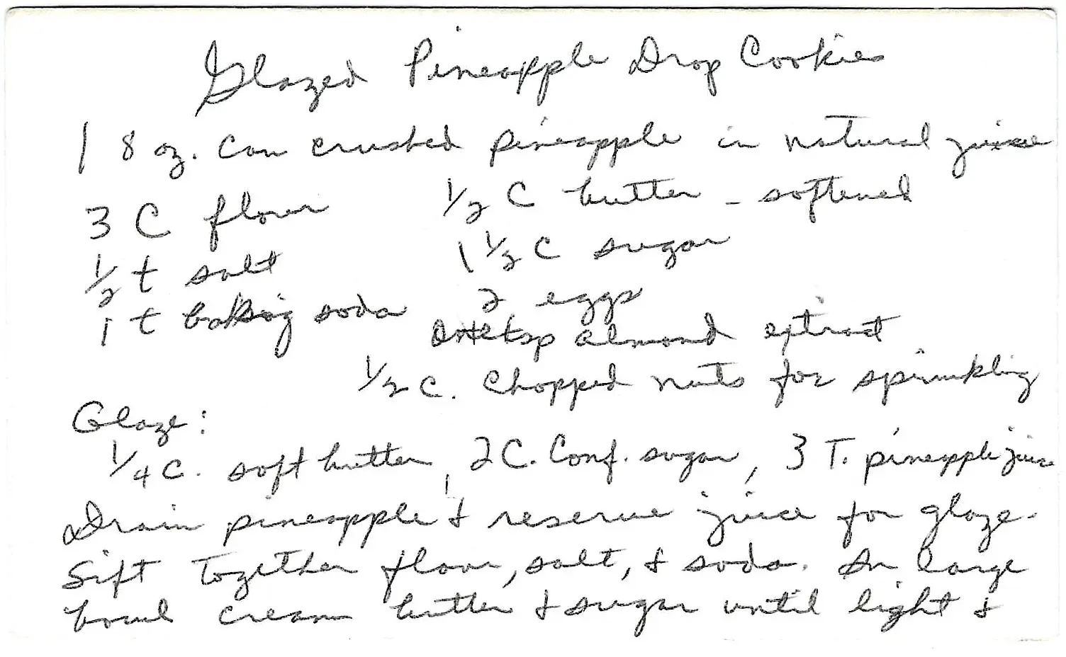 A soft, cake-like drop cookie bursting with tropical flavor. This recipe features crushed pineapple in the batter and is finished with a sweet, buttery pineapple glaze and a sprinkle of nuts.