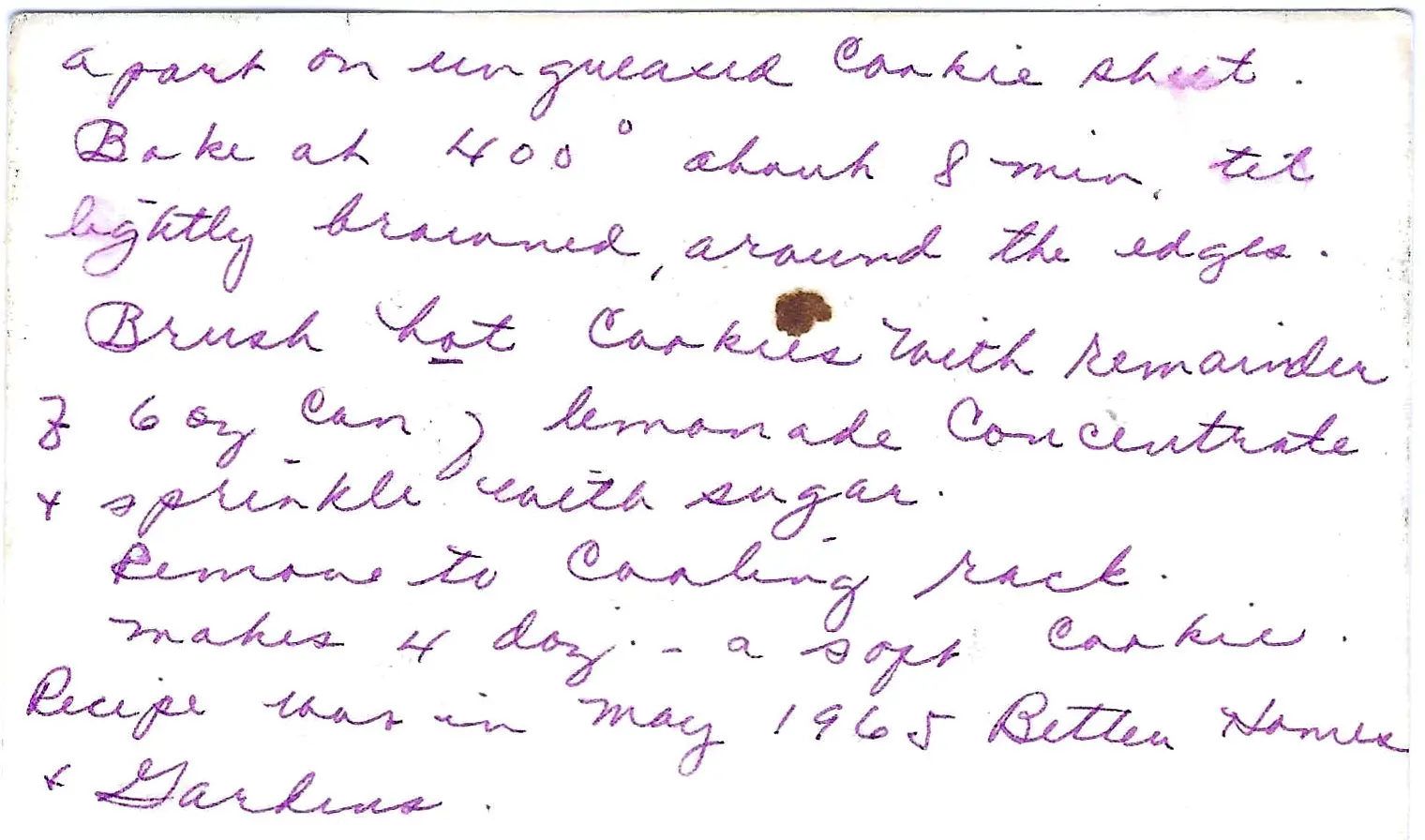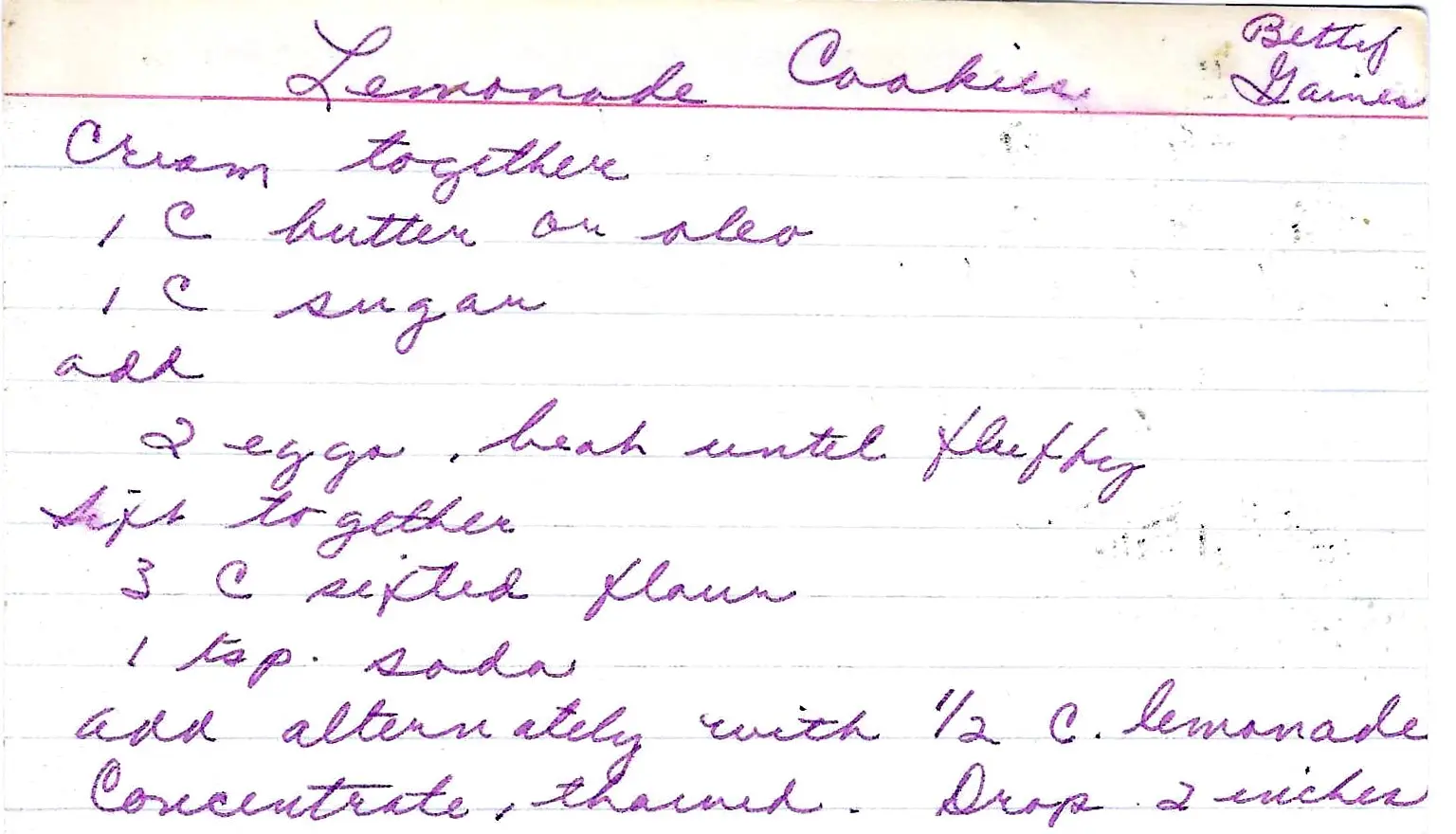 A bright and tangy recipe from Betty Gaines for soft, cake-like lemonade cookies. This classic 1965 recipe uses frozen lemonade concentrate in both the batter and as a simple glaze for a double dose of citrus flavor.