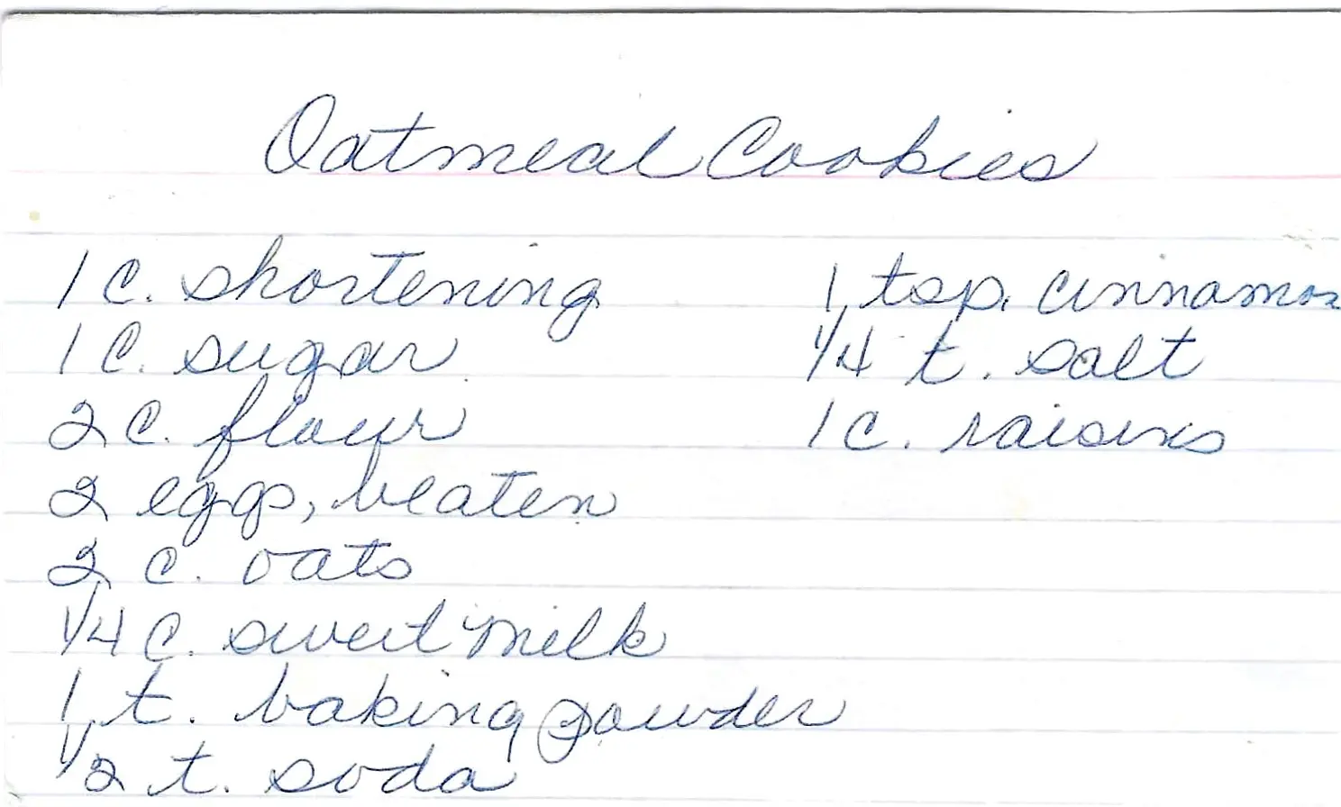 | 2 cups | Oats |