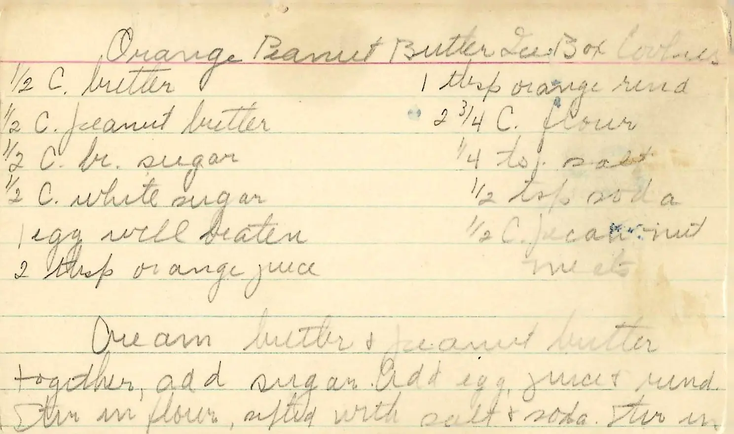 - Cream butter & peanut butter together, add sugar.
