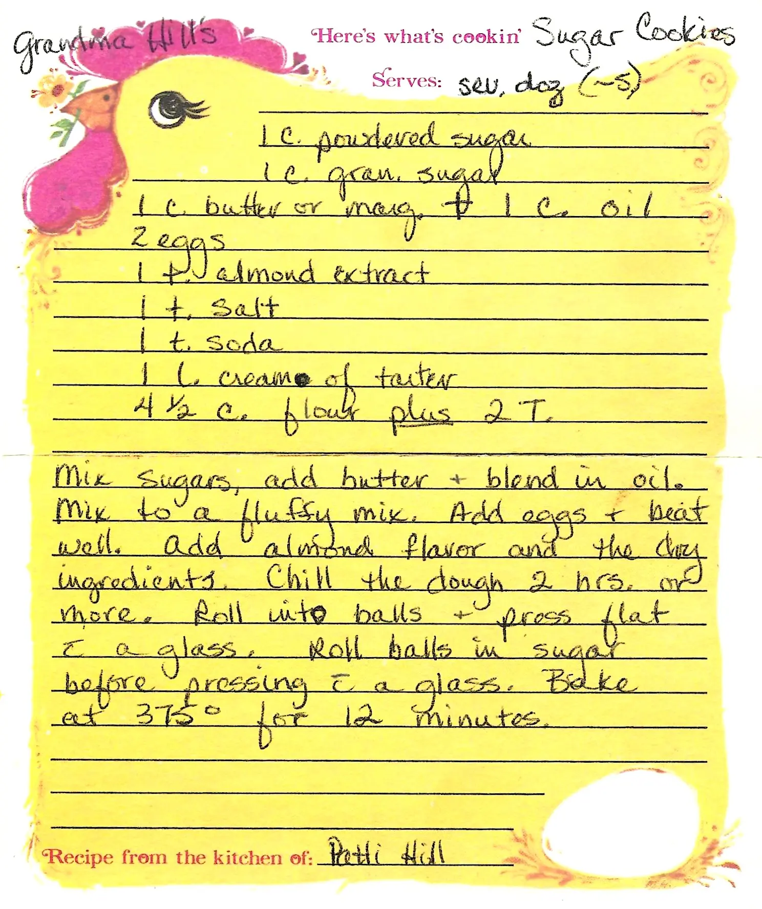 A cherished family recipe from Grandma Hill for soft, chewy sugar cookies with a delightful hint of almond. This large-batch recipe uses both butter and oil for a wonderfully tender texture.