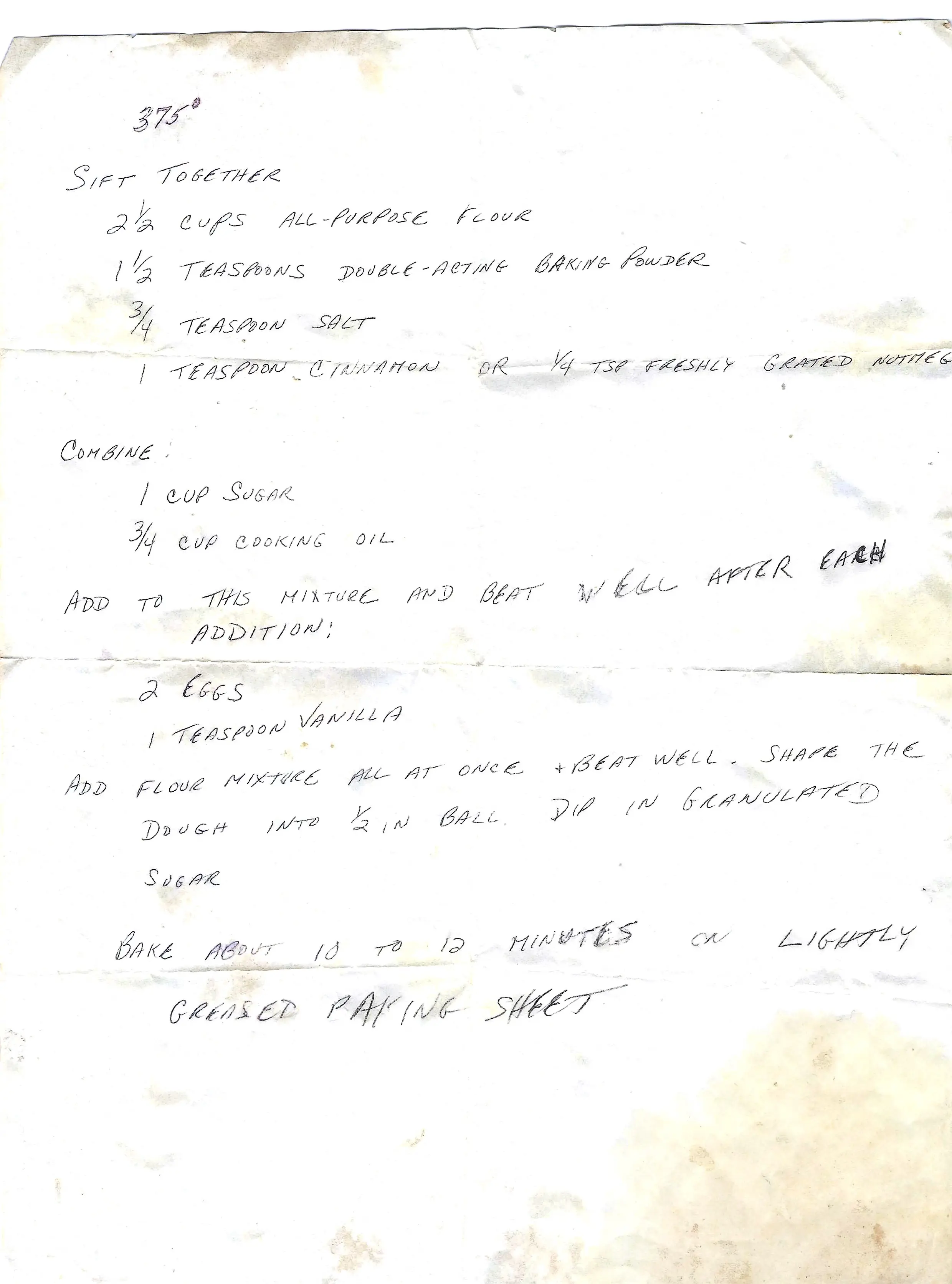 The original recipe card did not have a title; “Spice Sugar Cookies” has been used as a descriptive name.