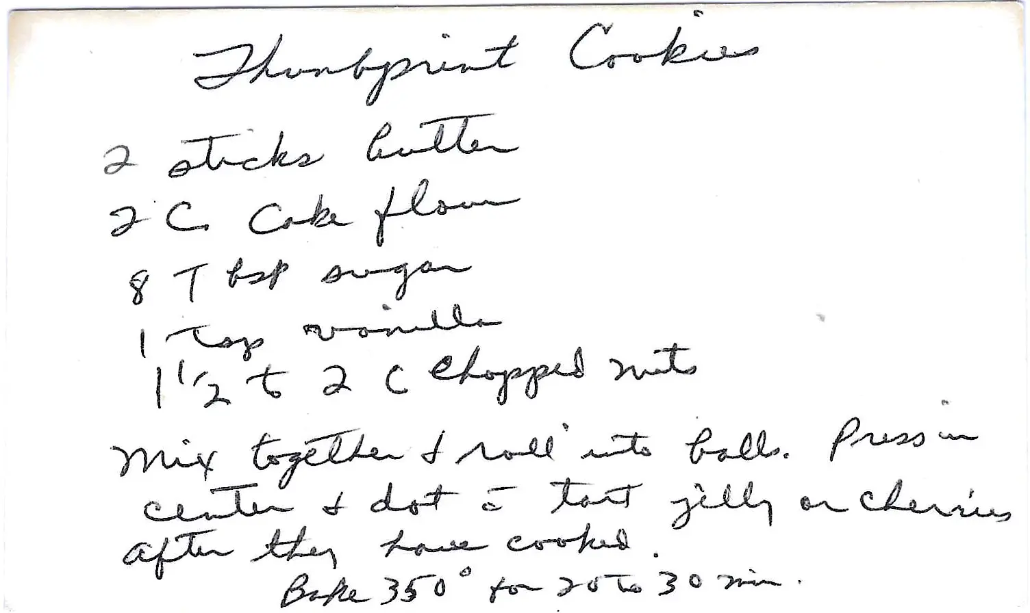 - Once cooled, fill the thumbprint indentations with a dot of your favorite jelly or a piece of a candied cherry.