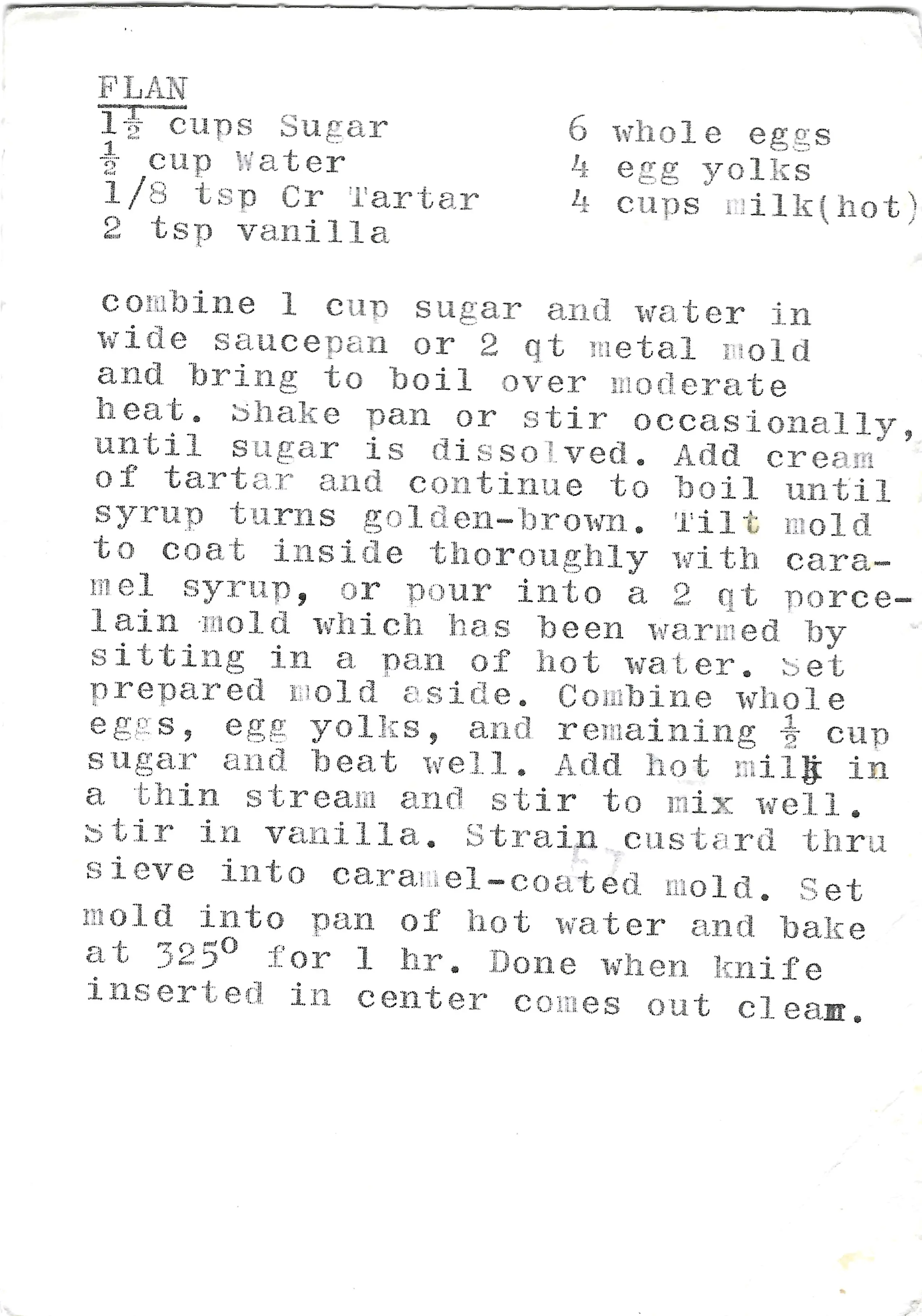 - The flan is done when a knife inserted in the center comes out clean.