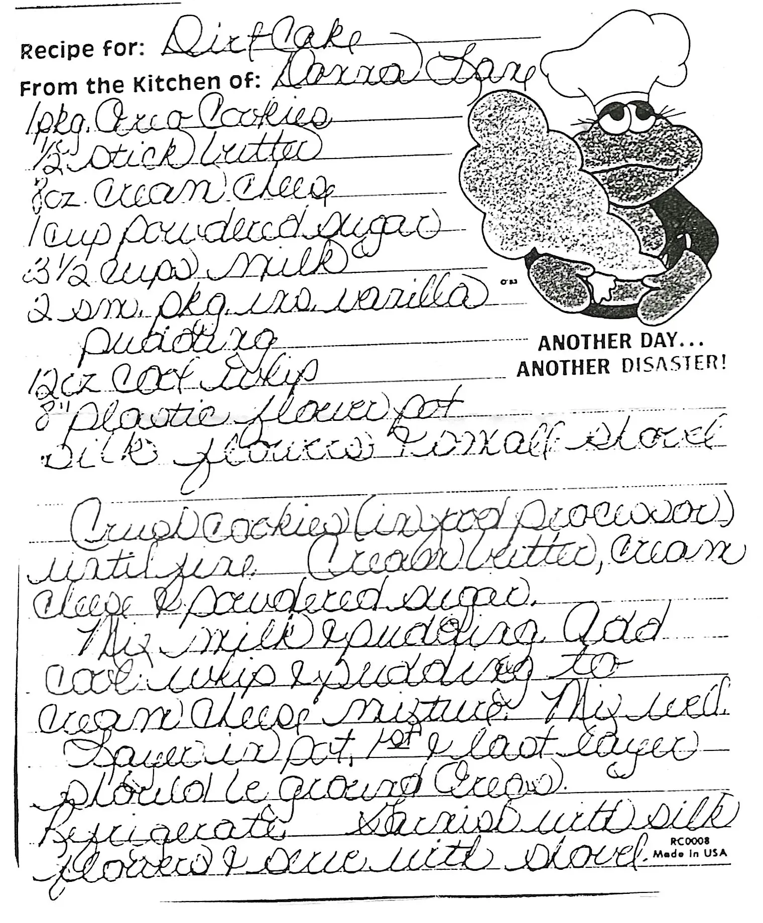 A fun, no-bake dessert made with layers of crushed chocolate sandwich cookies and a creamy vanilla pudding mixture, often served in a flower pot to resemble dirt.