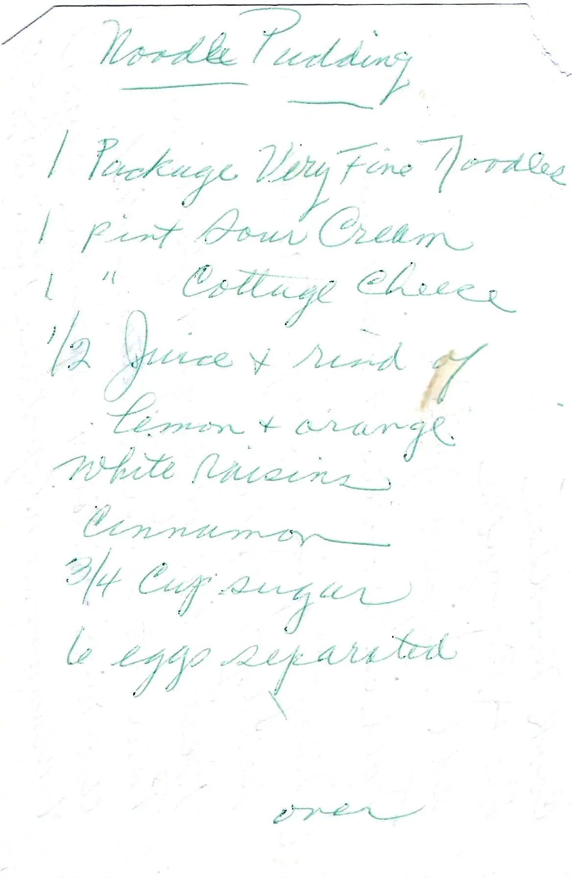 A classic sweet noodle pudding (kugel) with a rich custard base of sour cream and cottage cheese, flavored with citrus and raisins, and finished with a cinnamon-sugar butter topping.