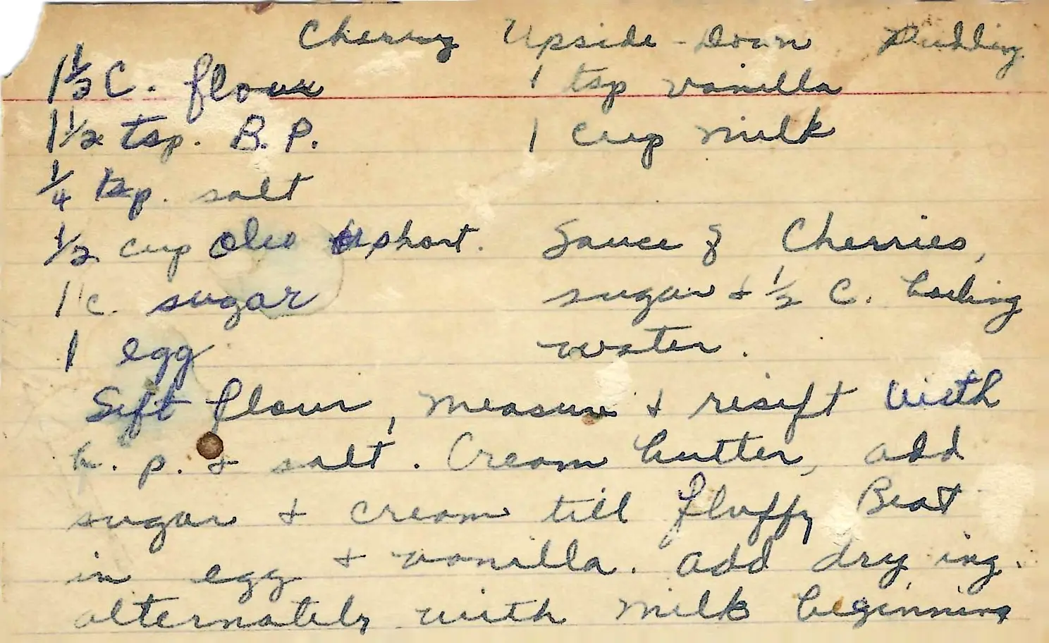 - Pour the batter into a buttered pan. Scatter cherries over the batter.