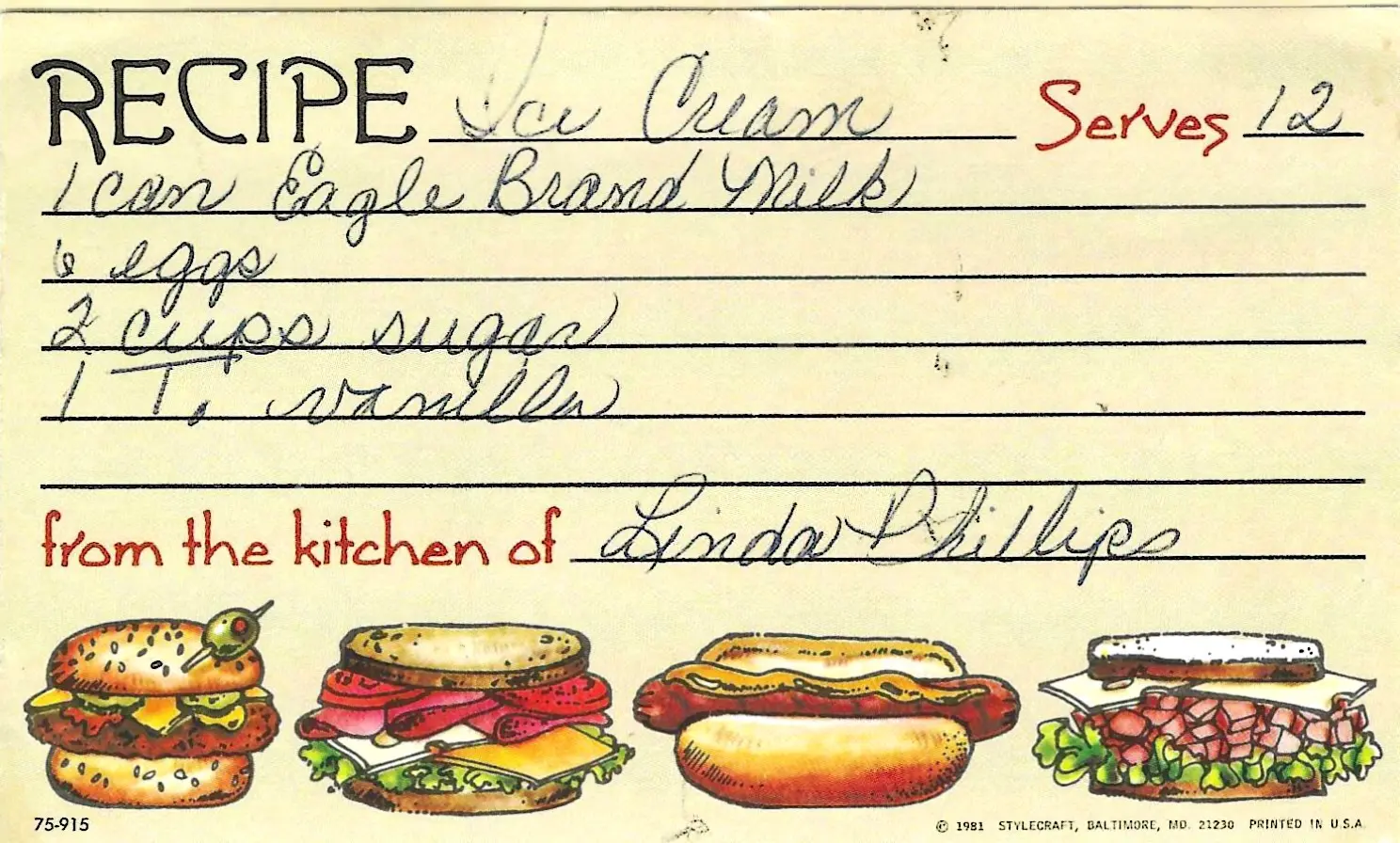 A traditional homemade ice cream with a rich custard base, easily adapted for either vanilla or chocolate.