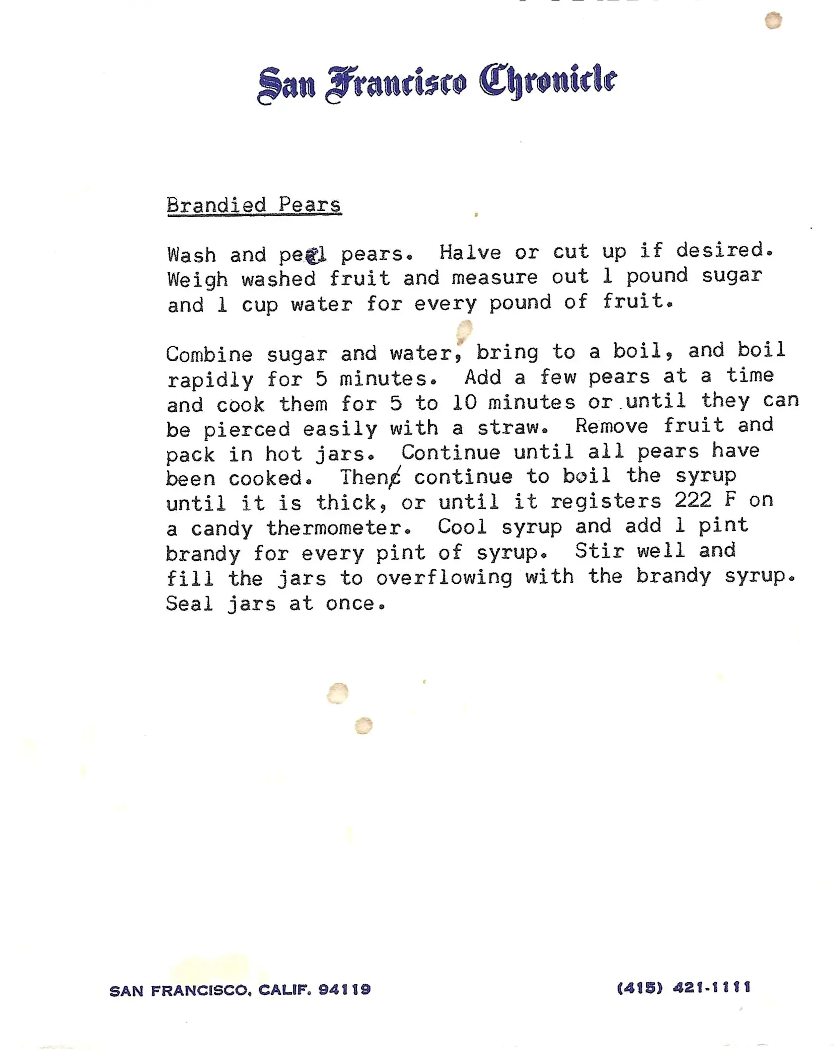 A classic preserving recipe for brandied pears, perfect for enjoying as a special dessert or giving as a homemade gift.