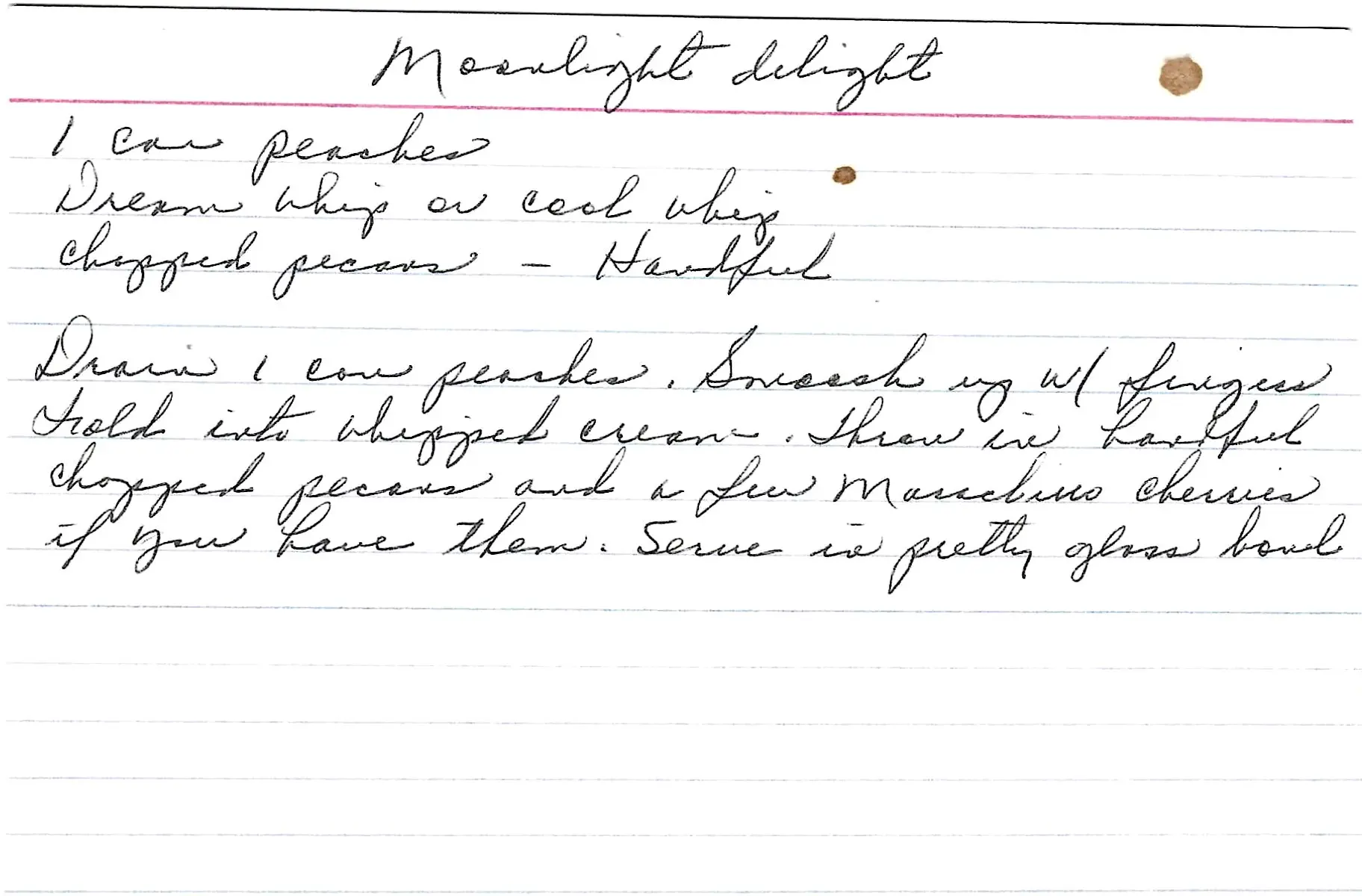 Aptly named “Moonlight Delight,” this is a light, airy, and incredibly simple peach fluff salad that comes together in minutes.