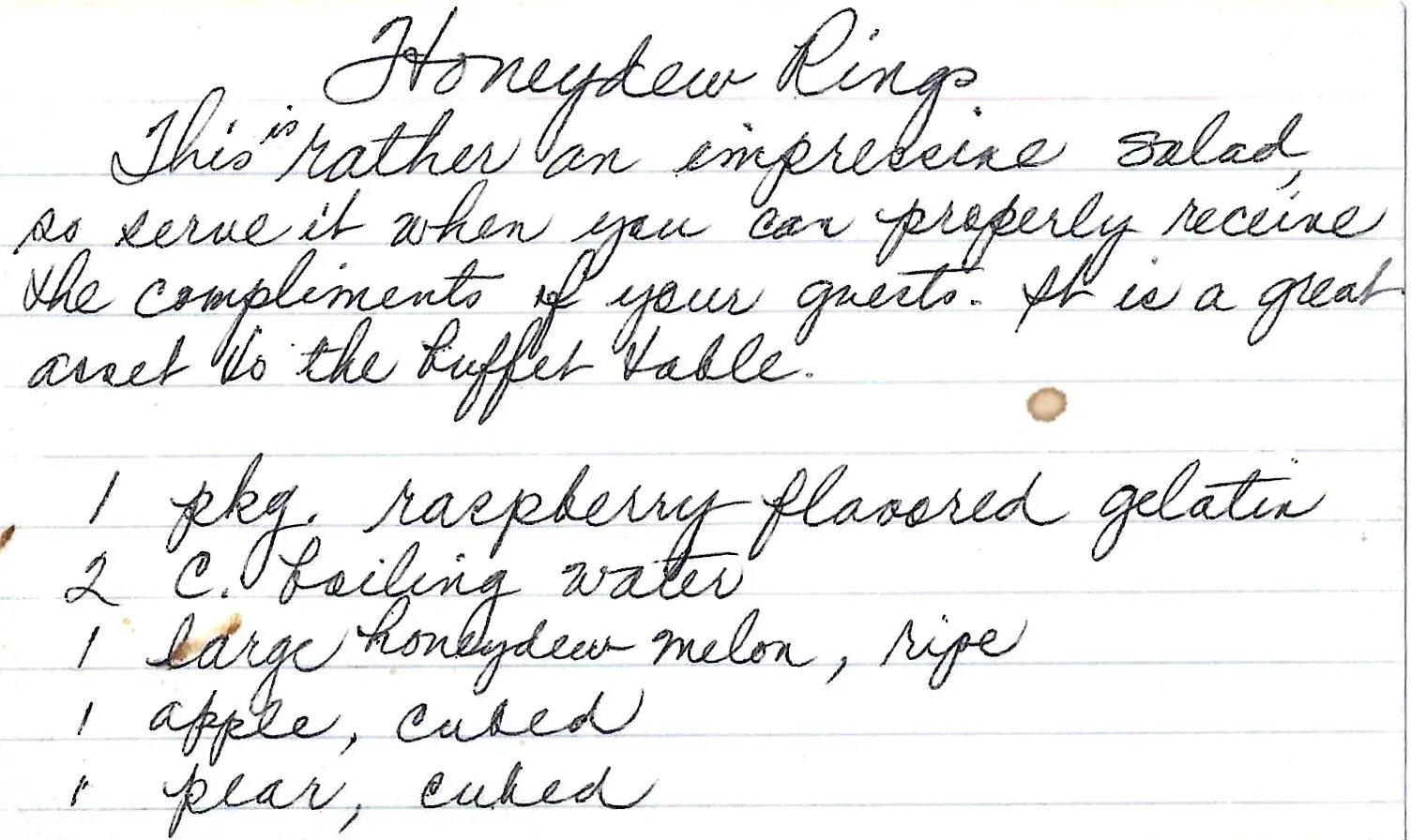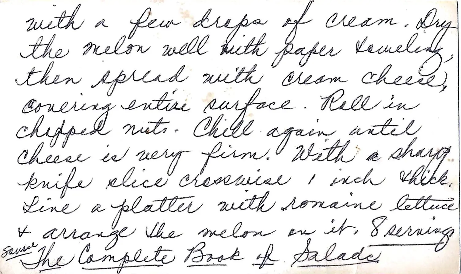 “This is rather an impressive salad, so serve it when you can properly receive the compliments of your guests. It is a great asset to the buffet table.”