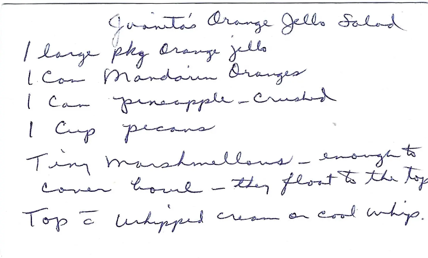 A classic orange Jello salad loaded with fruit and nuts, featuring a fun layer of marshmallows that floats to the top as it sets.