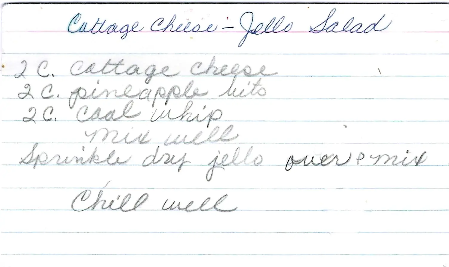 This is a classic “fluff” salad with a clever shortcut: the dry Jello powder is mixed right in, creating a creamy and flavorful dessert as it chills.