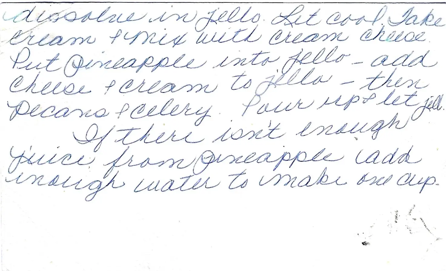 - Stir in the drained pineapple, chopped pecans, and diced celery.