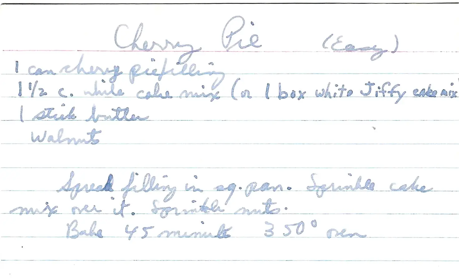 - Spread the cherry pie filling evenly in the bottom of the pan.