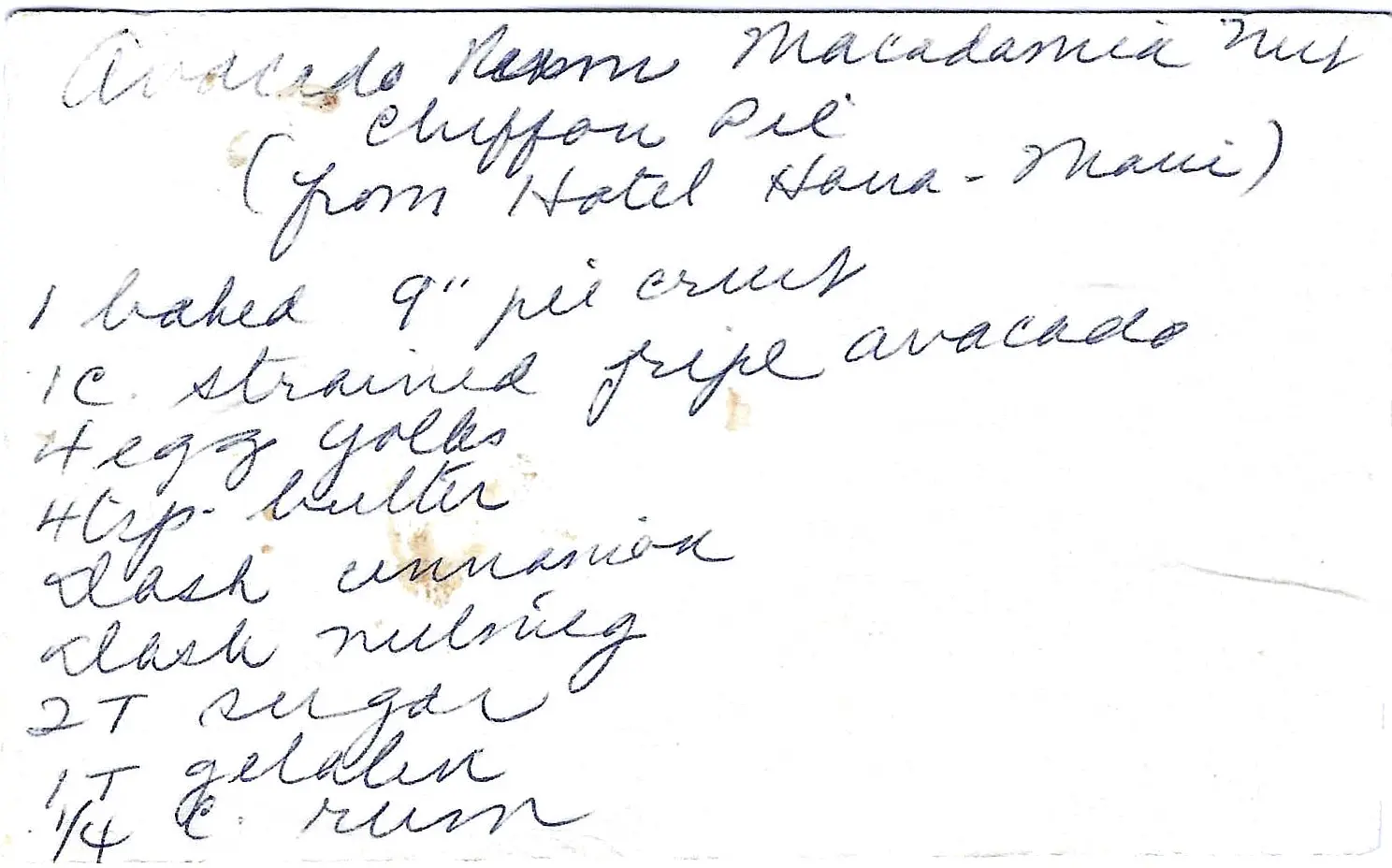 An elegant and unusual chiffon pie with a creamy avocado and rum filling, from a recipe attributed to the Hotel Hana-Maui.