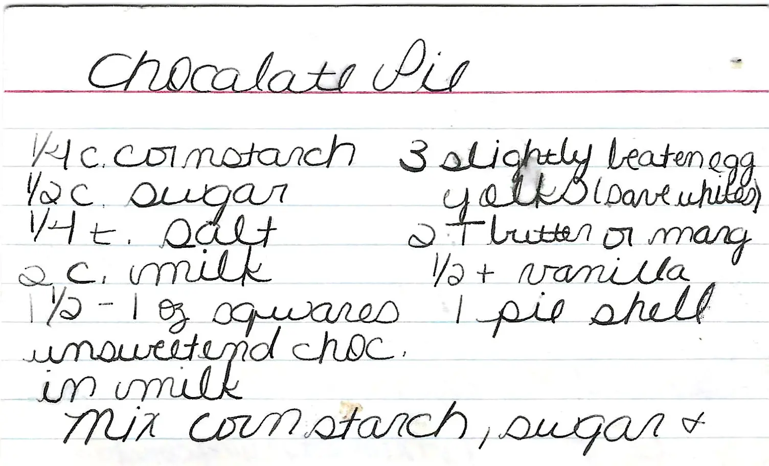 This is a classic cooked chocolate pudding pie. The long chilling time is essential for the filling to set up perfectly.