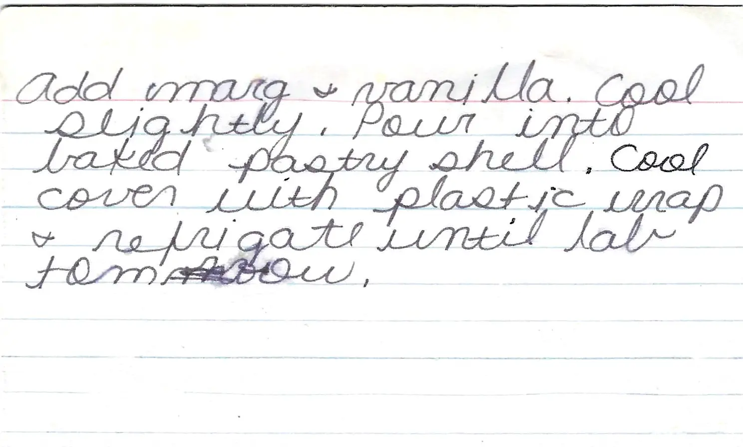 - Let the filling cool slightly, then pour it into the baked pie shell.