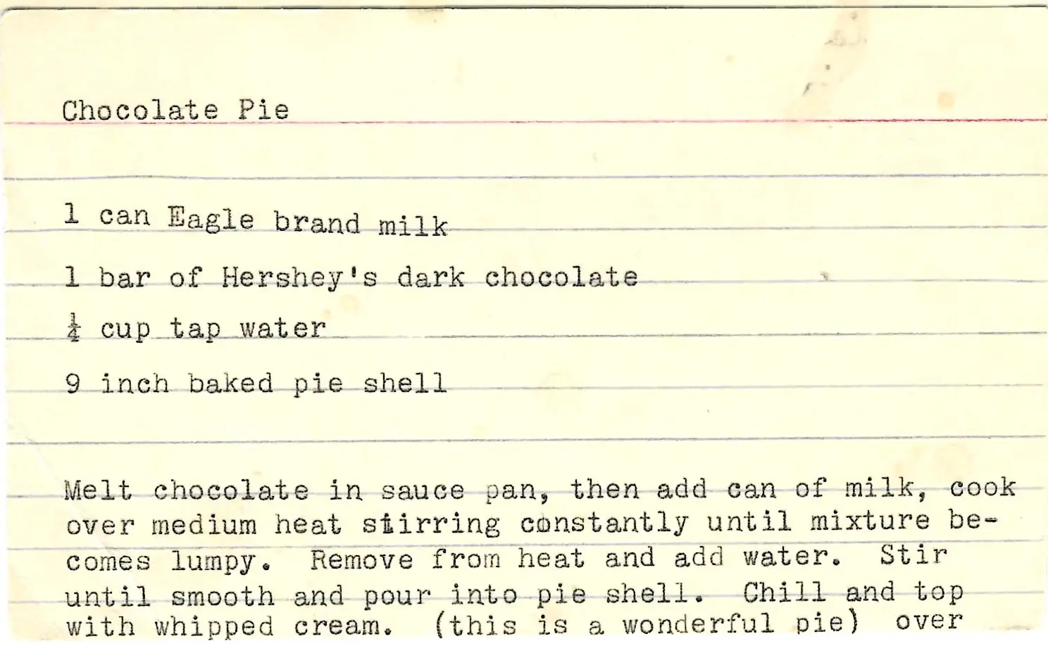 “This is a wonderful Pie.” - as noted on the recipe card.