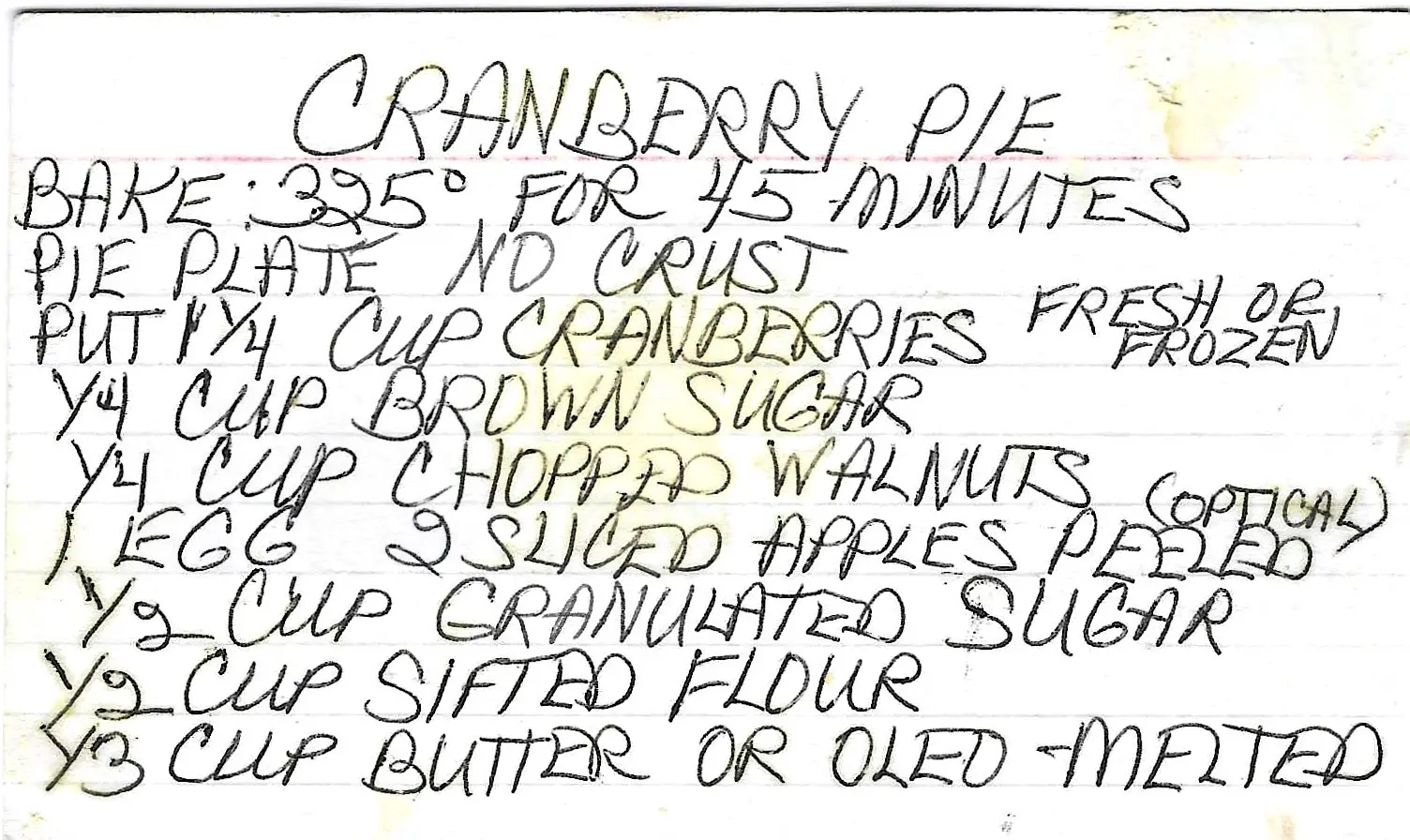 - Spread the cranberries on the bottom of the pie plate. Top with the sliced apples.