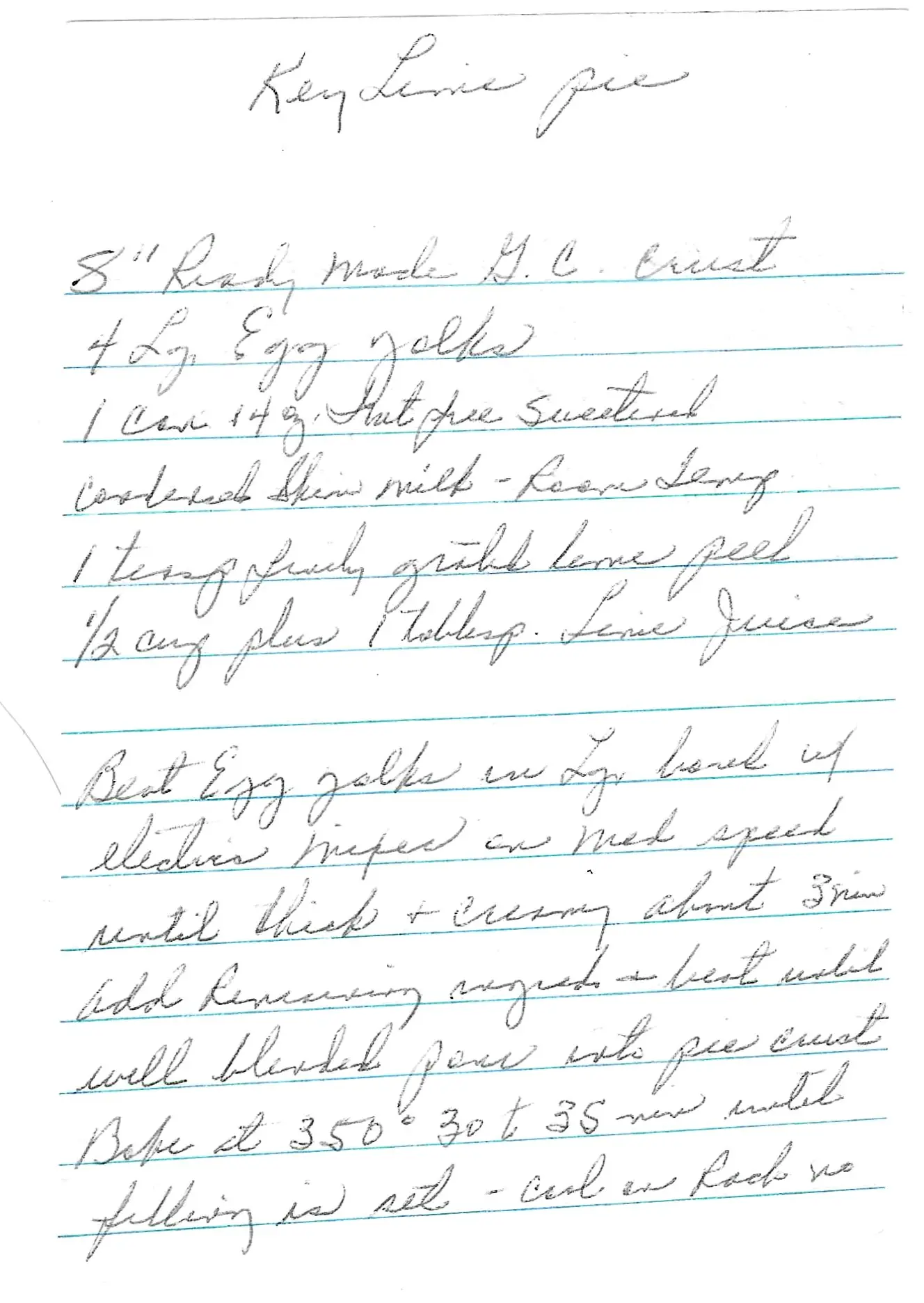 The pie can be stored, tightly covered, in the refrigerator for up to 4 days. Serve with whipped cream or Cool Whip. For the most authentic flavor, use Key limes if available.
