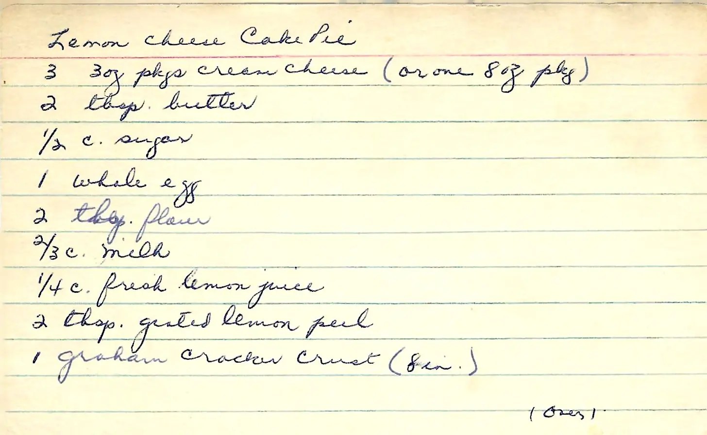 A classic baked cheesecake pie with a bright, tangy lemon flavor. The recipe notes it’s “extra good topped with sour cream.”