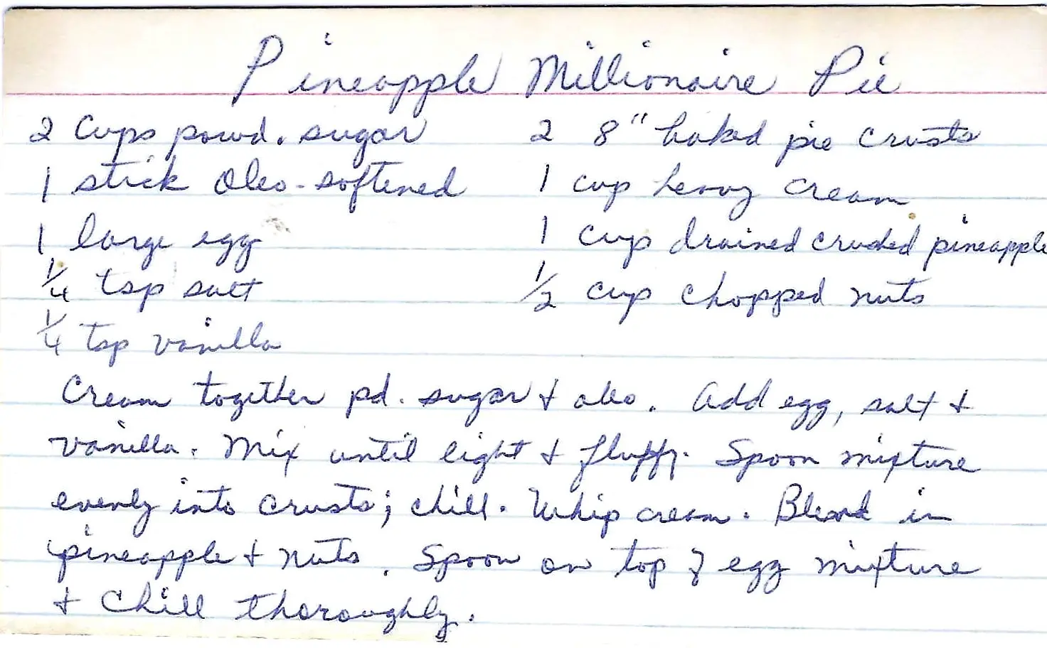 A classic, decadent no-bake Millionaire Pie with a rich, fluffy base and a light pineapple-nut whipped cream topping.