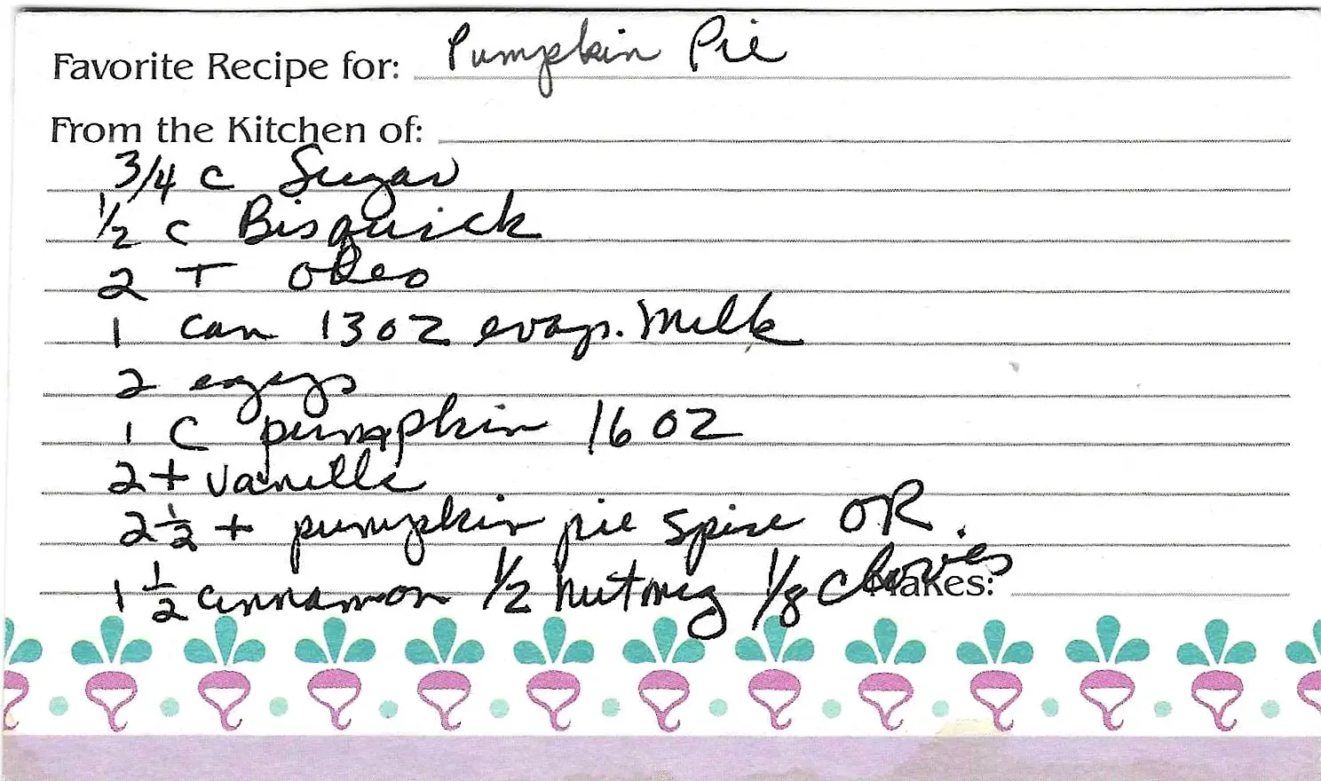 | 2 tsp | Pumpkin Pie Spice |