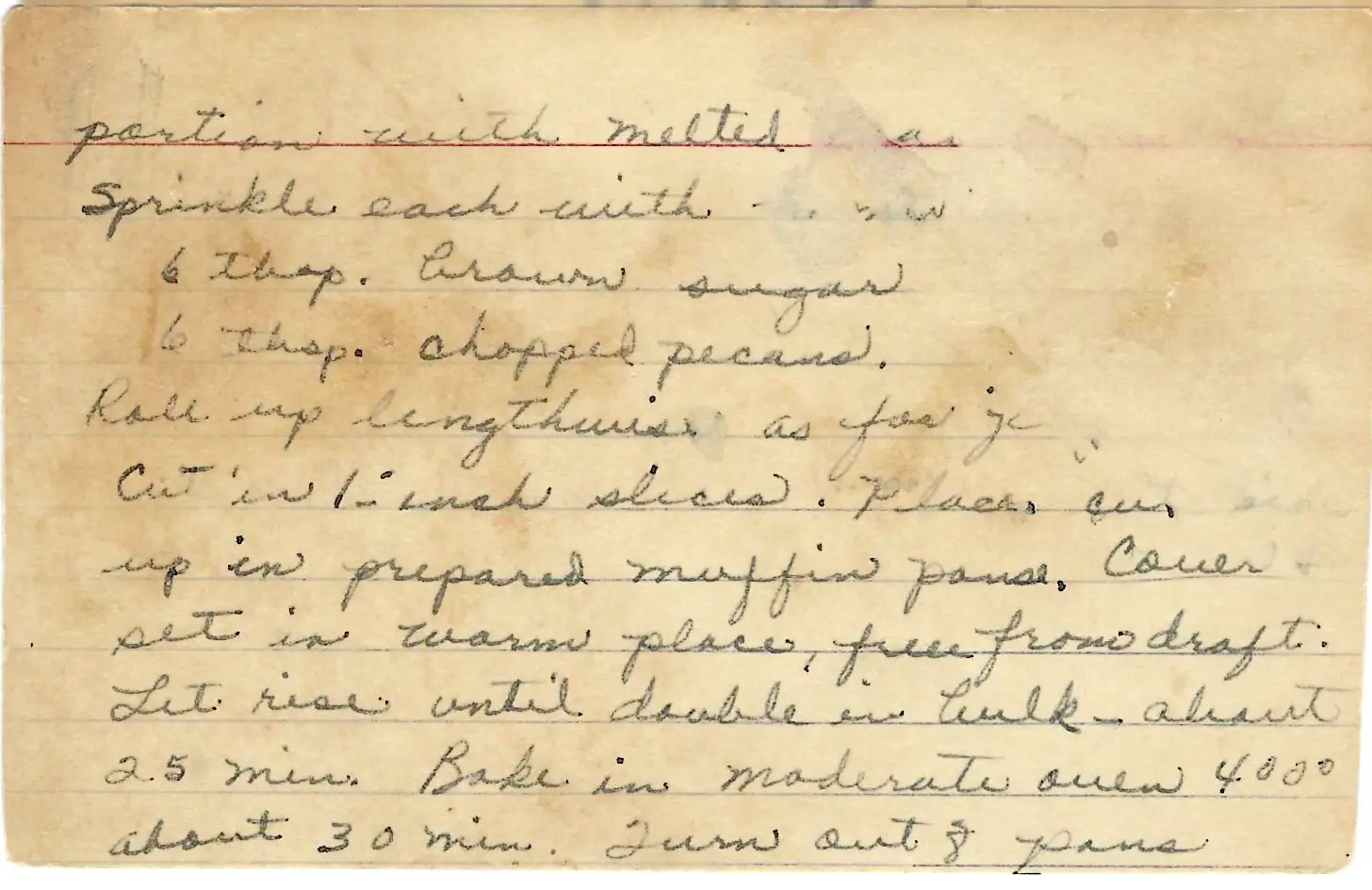 - Prepare Pans: While dough rises, make the glaze. Melt 1/2 cup butter, 1 cup brown sugar, and honey/corn syrup. Divide this among 24 greased muffin pans. Place 3 pecan halves in each.
