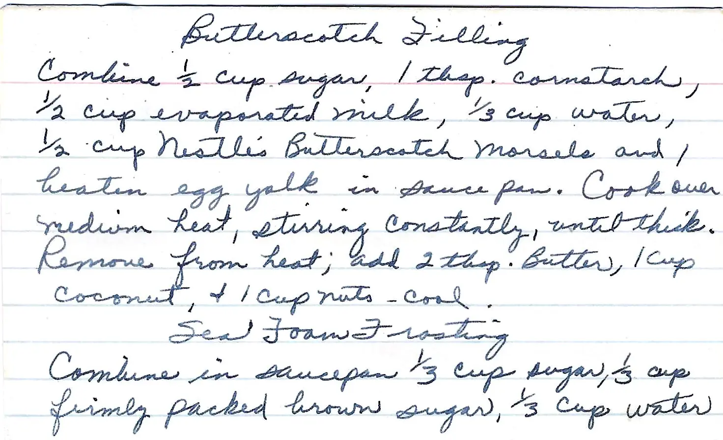 A rich, chewy butterscotch frosting or filling that’s packed with coconut and nuts, similar to the topping for a German chocolate cake.
