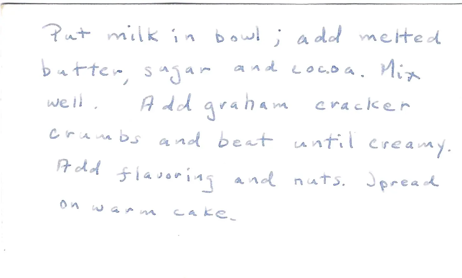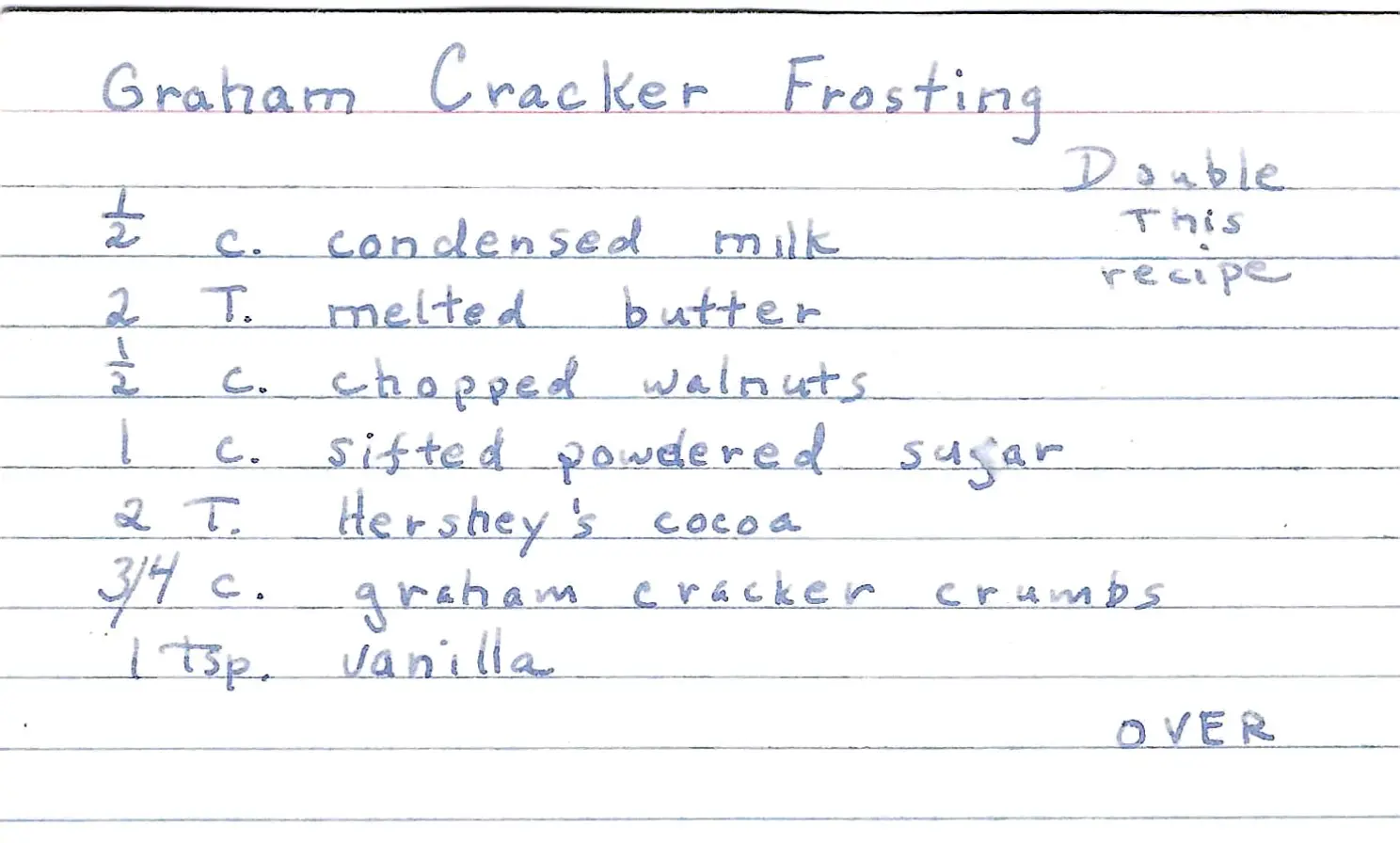 A unique frosting with a rich, fudgy texture and a delightful crunch from graham crackers and walnuts. It’s easiest to spread while the cake is still warm.