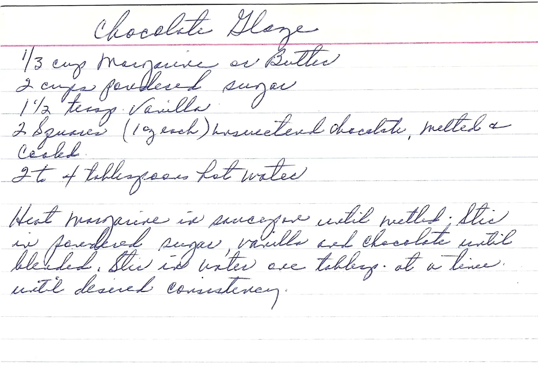 - Stir in the hot water, one tablespoon at a time, until the glaze reaches your desired consistency.