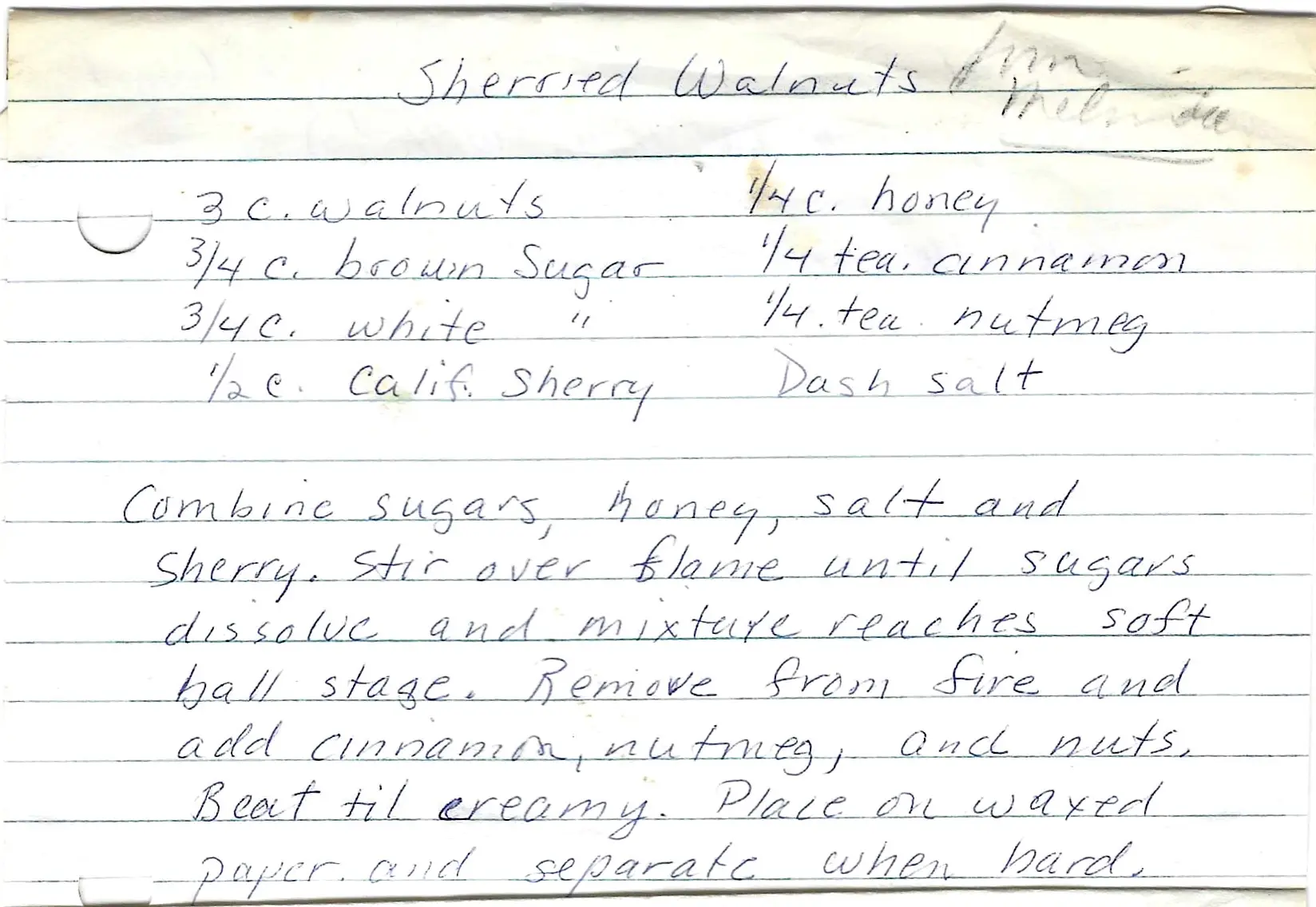 A classic candied nut recipe with a unique, creamy sugar coating flavored with sherry and spices.