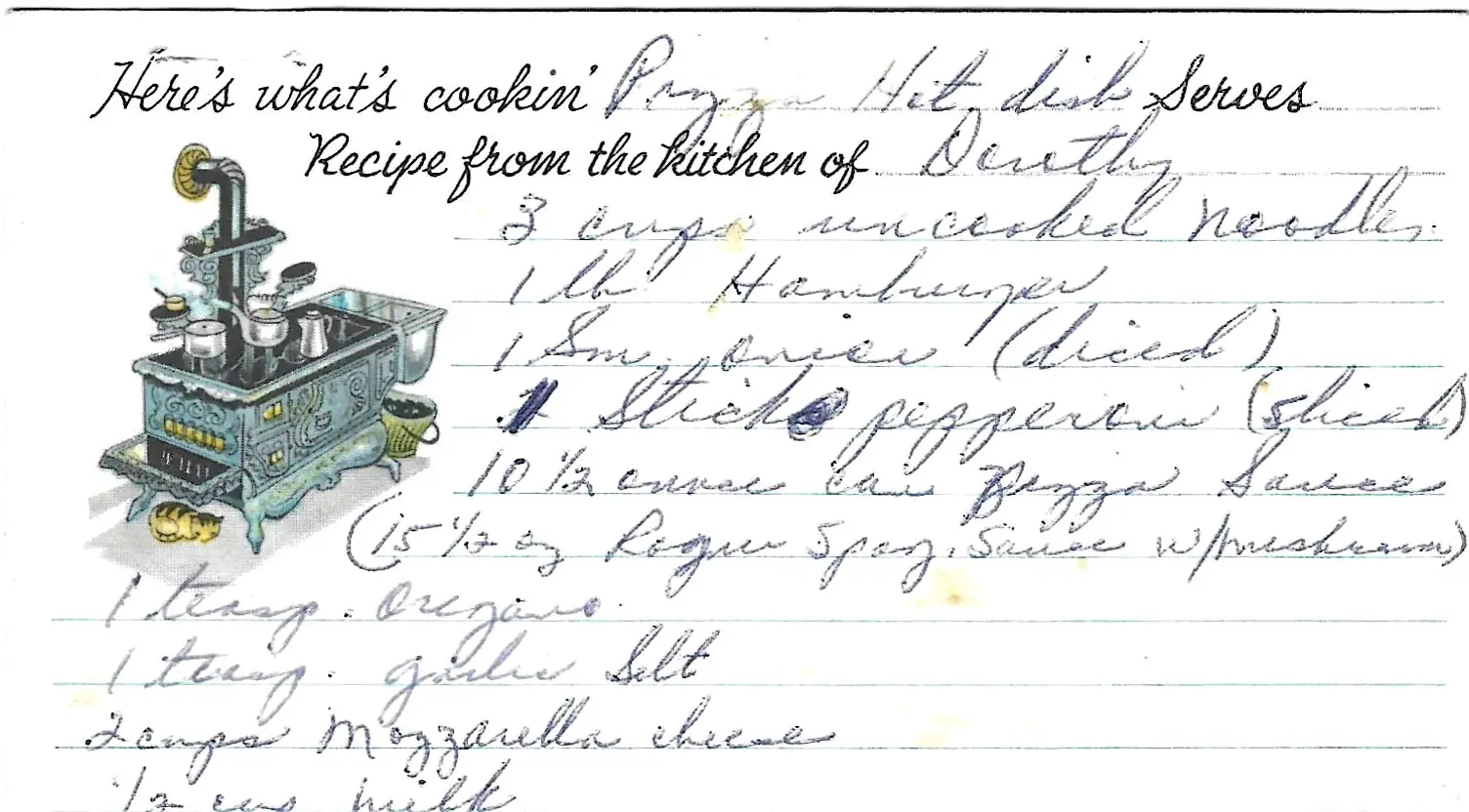 - In a large bowl, combine the cooked noodles, the browned hamburger mixture, sliced pepperoni, pizza sauce, oregano, garlic salt, milk, and a generous amount of mozzarella cheese.