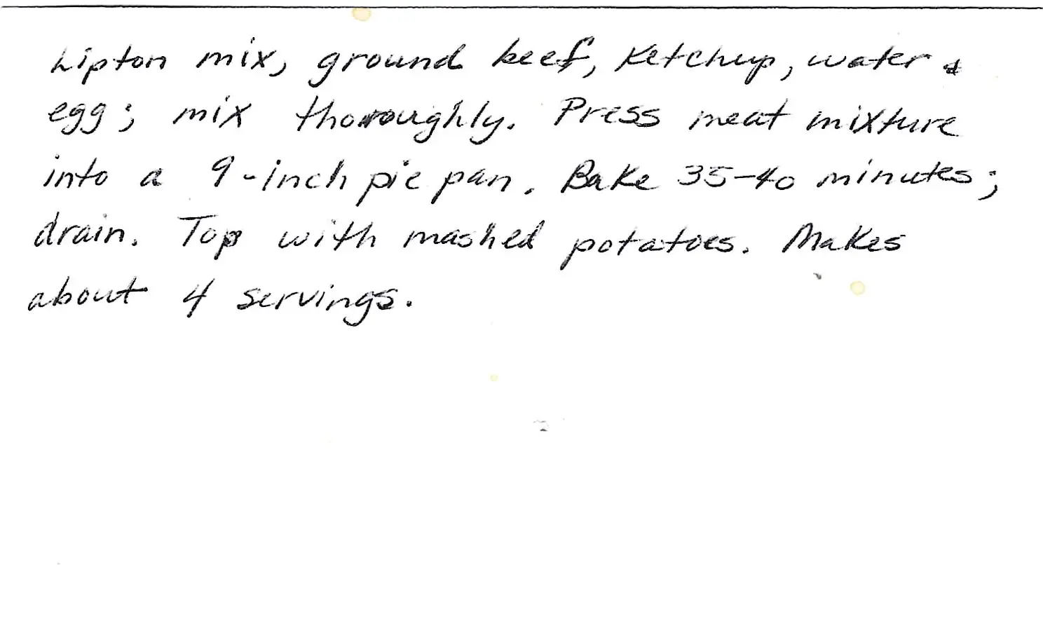- In a medium bowl, combine the Lipton mushroom mix, ground beef, bread crumbs, ketchup, water, and egg. Mix thoroughly.