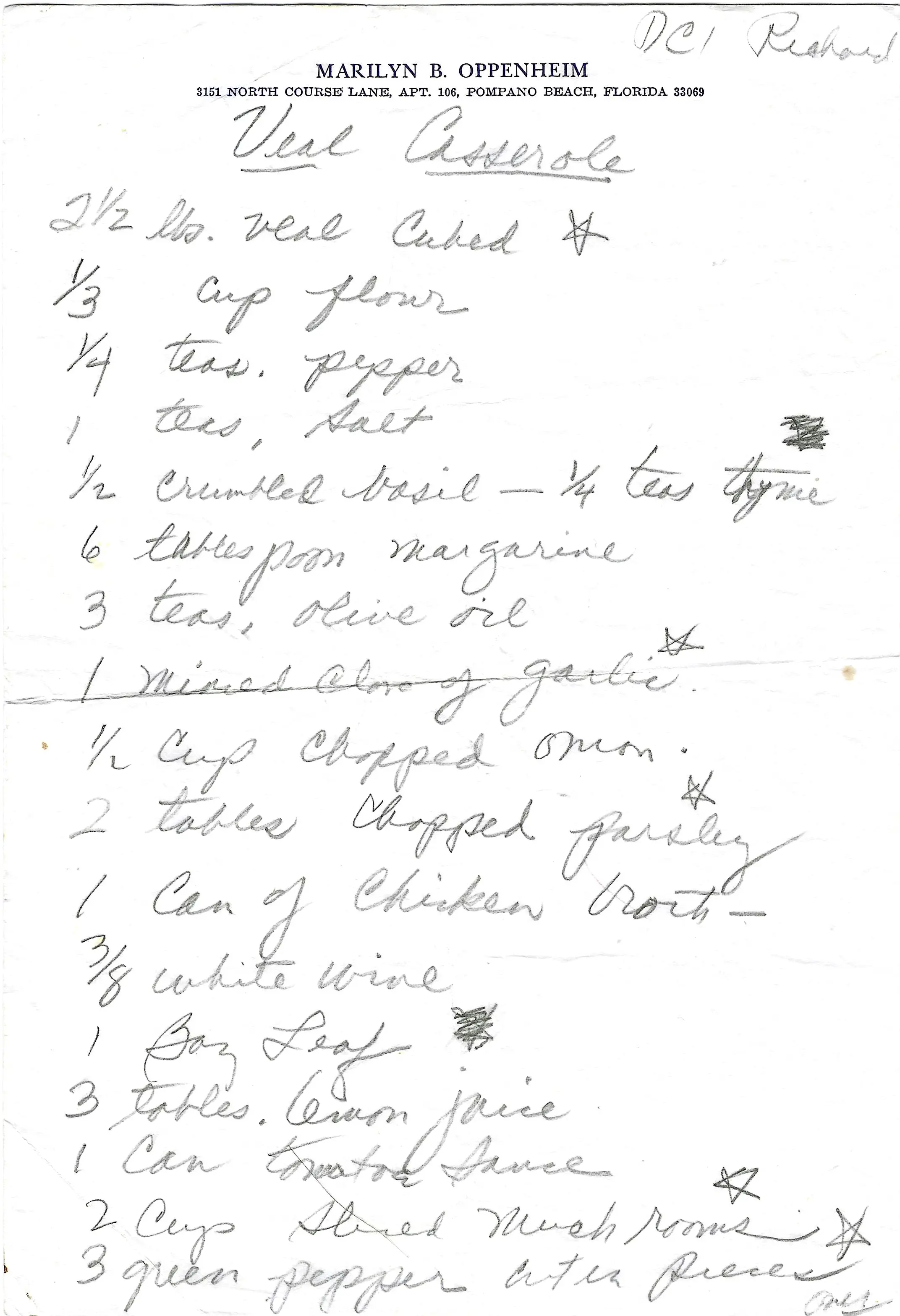 This recipe is from the letterhead of Marilyn B. Oppenheim of Pompano Beach, Florida.