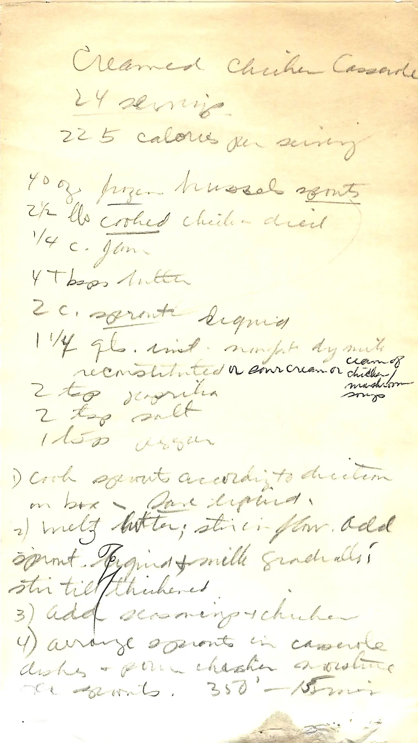 | One Quarter Quart (One Cup) | Instant Nonfat Dry Milk, Reconstituted (or Cream of Chicken/Mushroom Soup) |