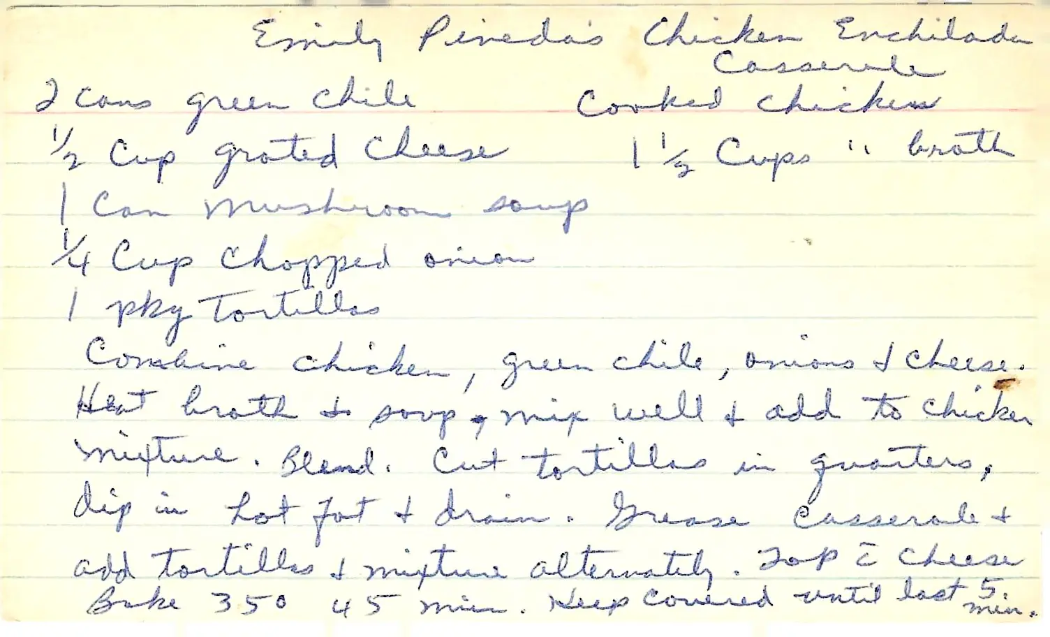 - Grease Casserole & add Tortillas & Chicken mixture alternately.