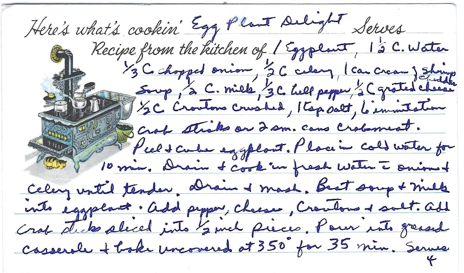- In a small bowl, beat the shrimp soup and milk together. Add this to the mashed eggplant mixture.