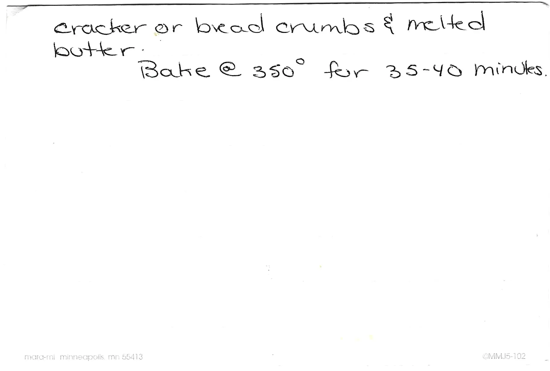 | 1/2 cup | Crushed Ritz Crackers or Plain Bread Crumbs |