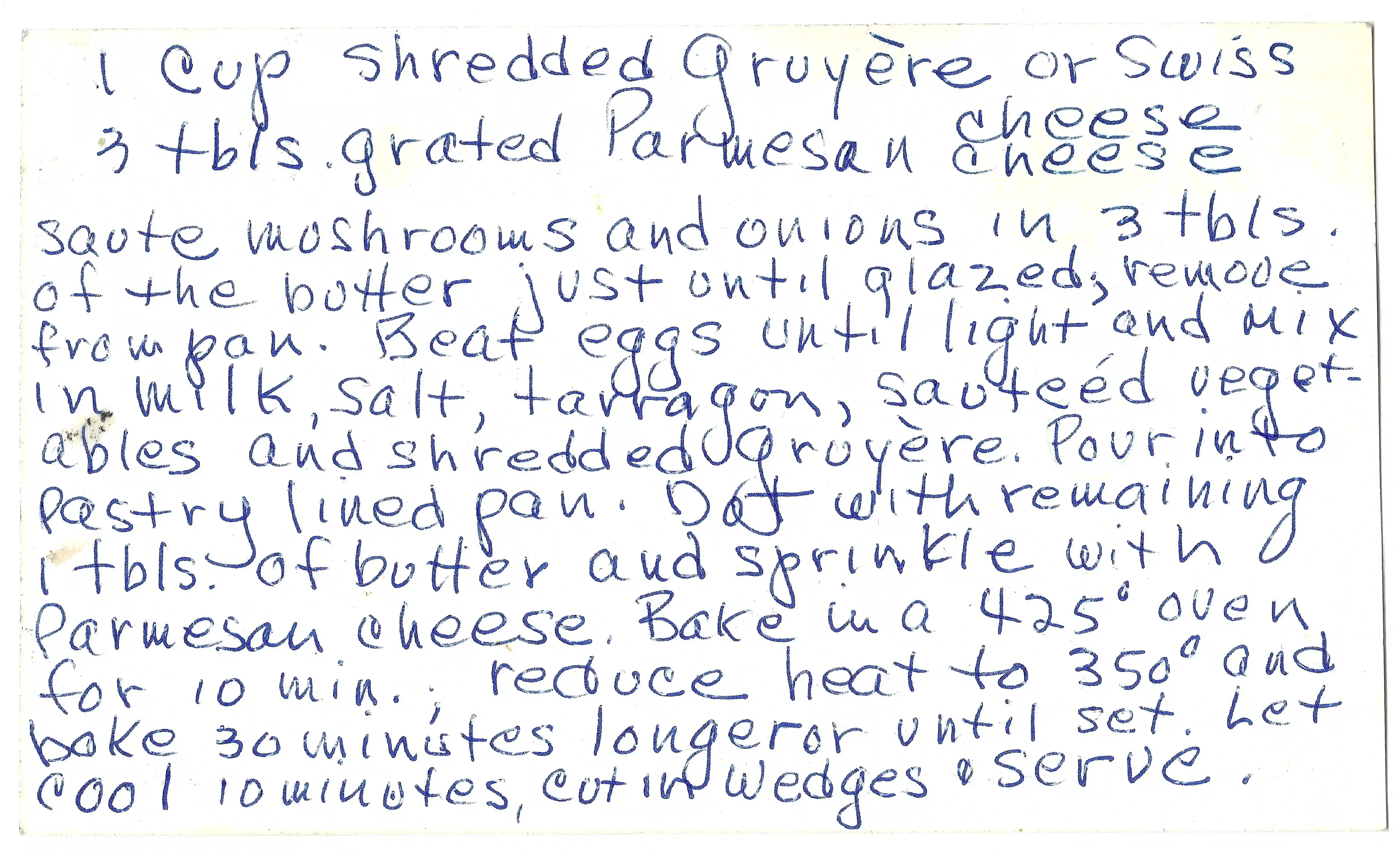A classic and savory quiche with mushrooms, green onions, and Gruyère cheese in a rich, tarragon-spiced egg custard.