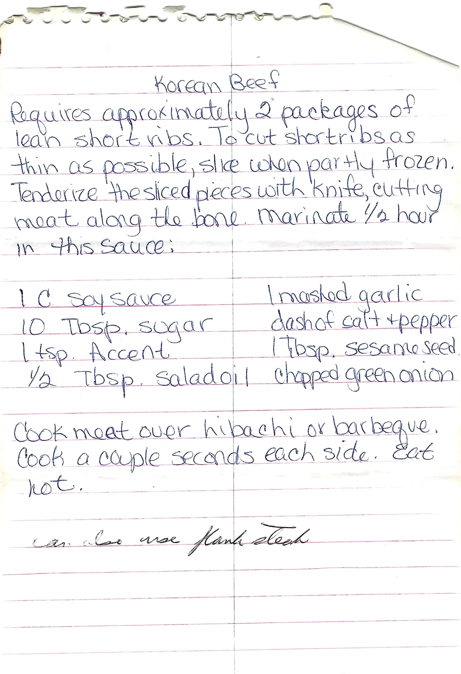 A quick and easy Korean BBQ recipe. Thin-sliced short ribs (or flank steak) are marinated in a sweet and savory soy-garlic-sesame sauce and grilled hot and fast.