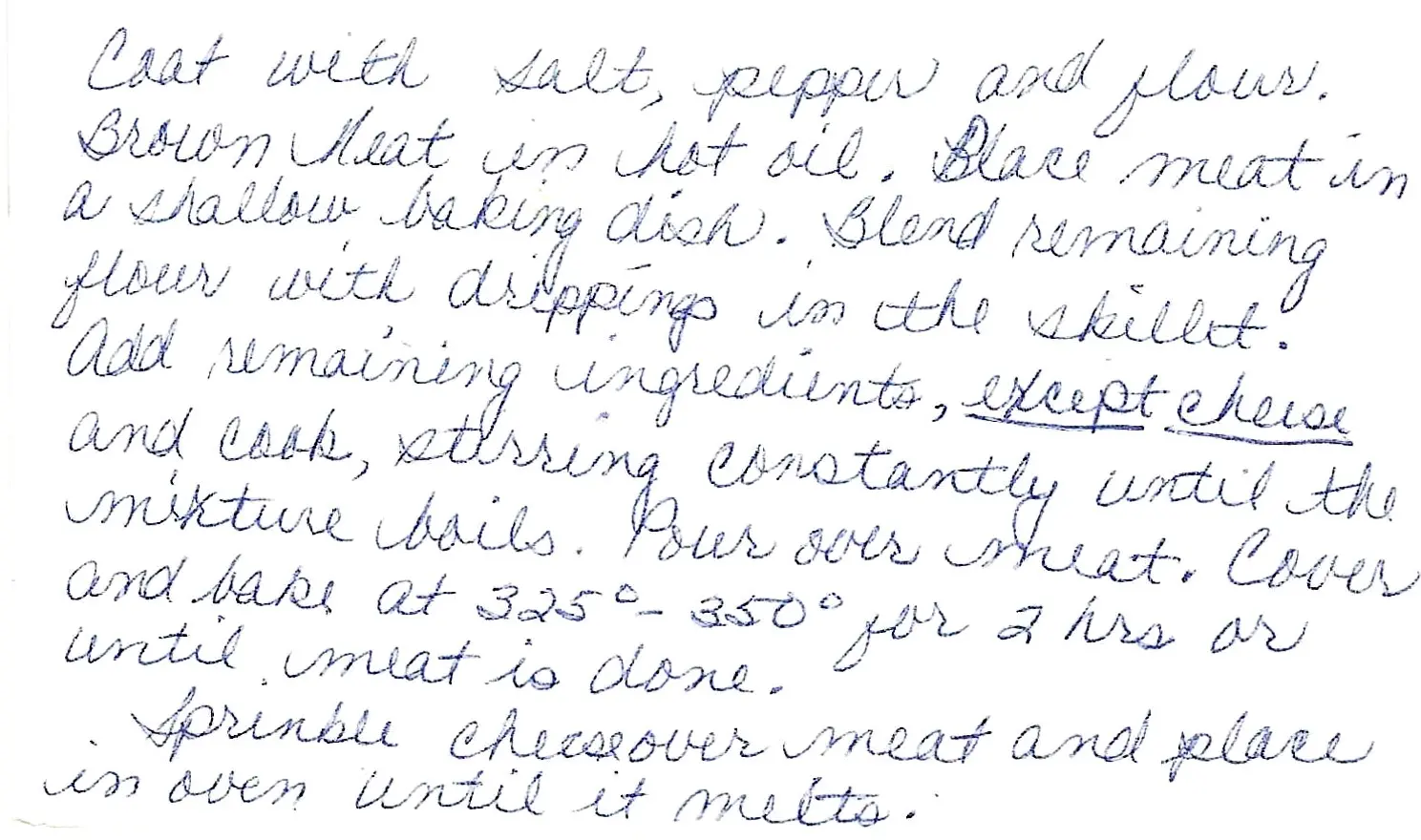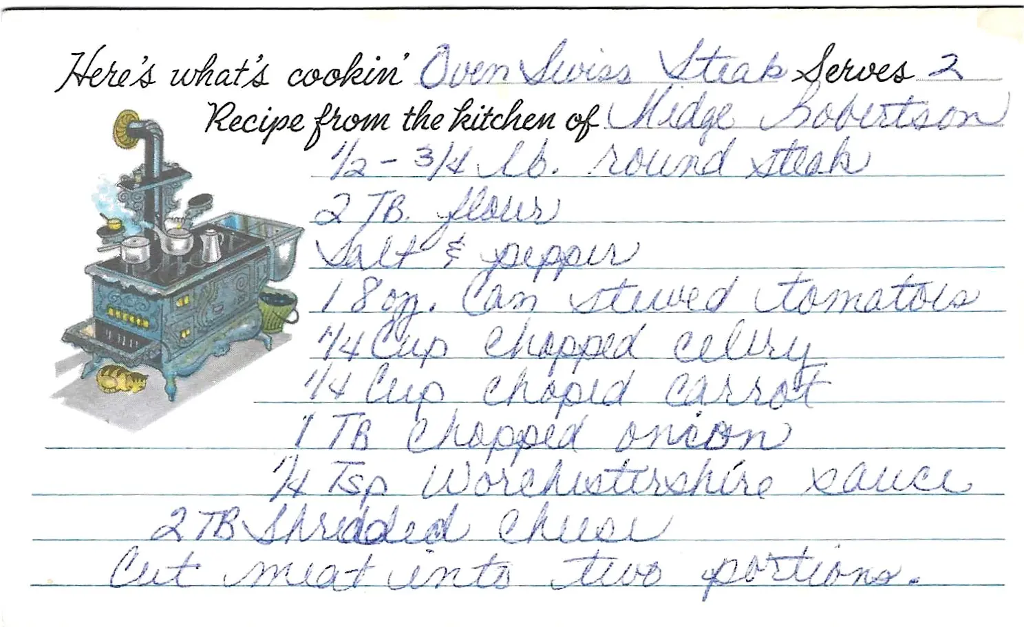 A classic comfort food recipe. Tender round steak is browned, then slow-braised in the oven with stewed tomatoes, celery, carrots, and onions, and finished with melted cheese.