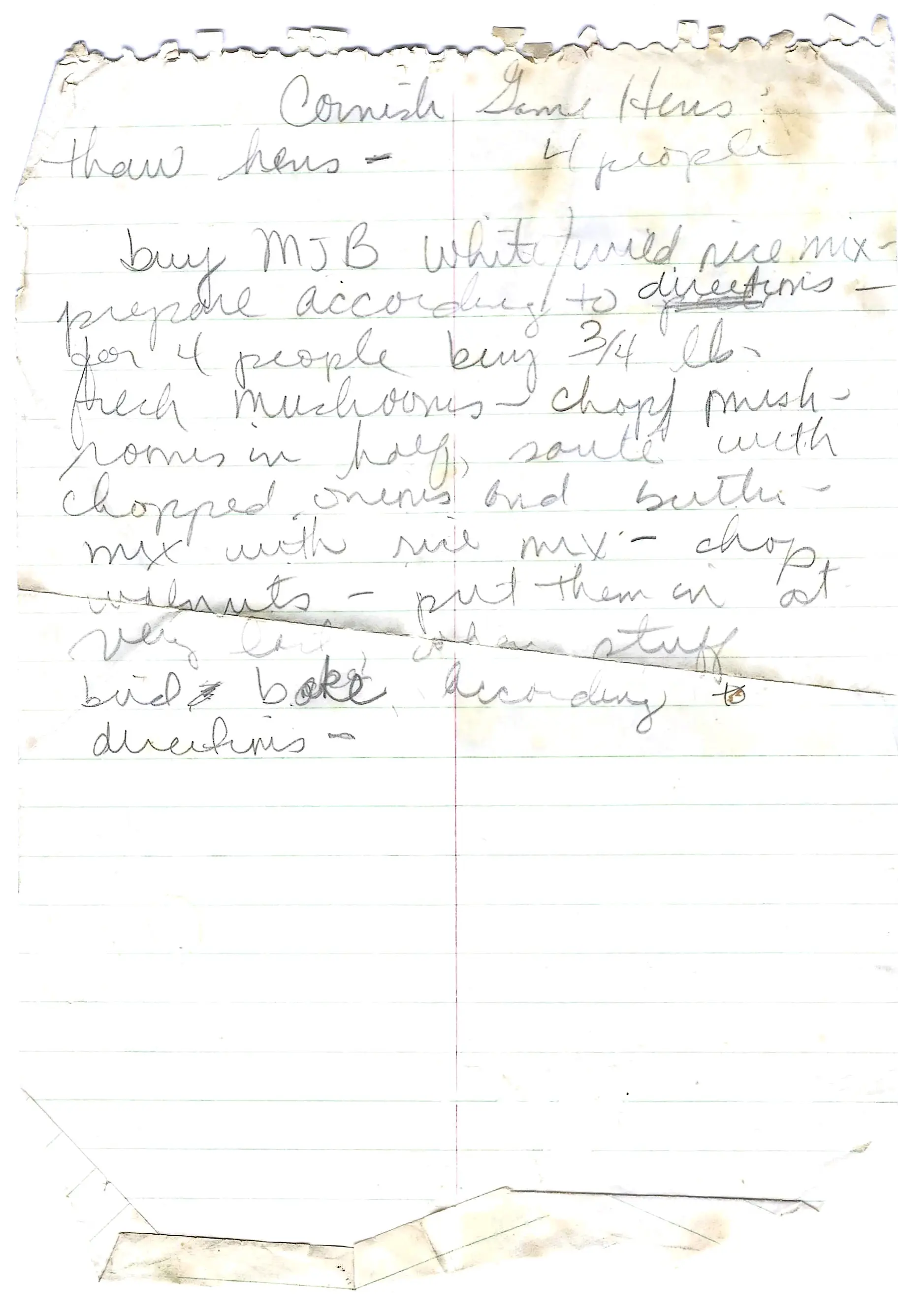 - Stuff the thawed Cornish game hens with the rice and mushroom mixture.