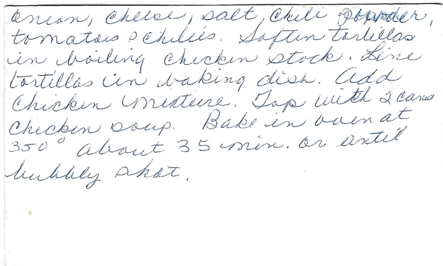 - Soften tortillas in boiling chicken stock.