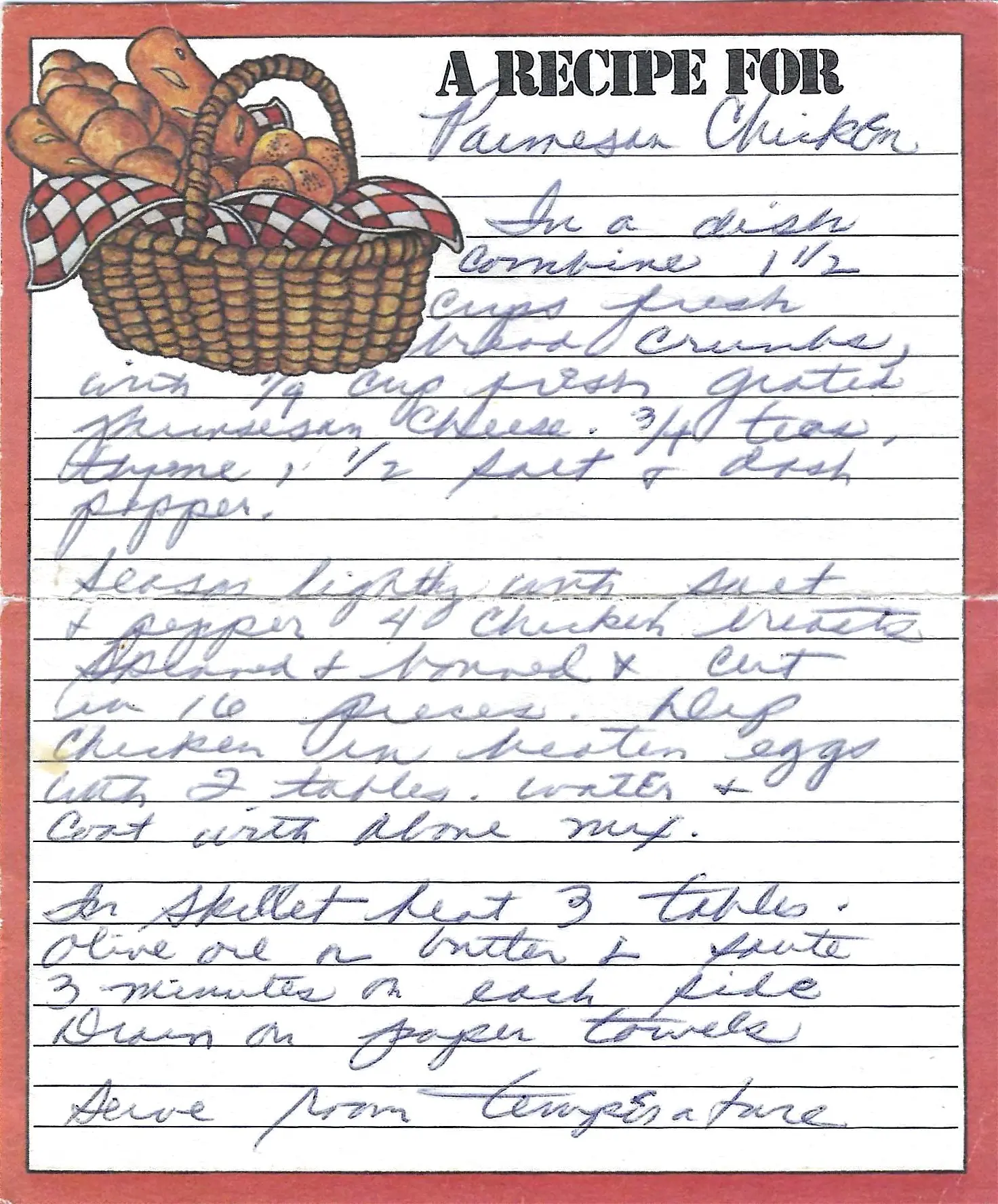 The original recipe’s instruction to “cut in 1/2 pieces” has been interpreted as cutting the breasts in half to create thinner cutlets. The final instruction, “Serve from temperature,” has been interpreted as “Serve warm.”