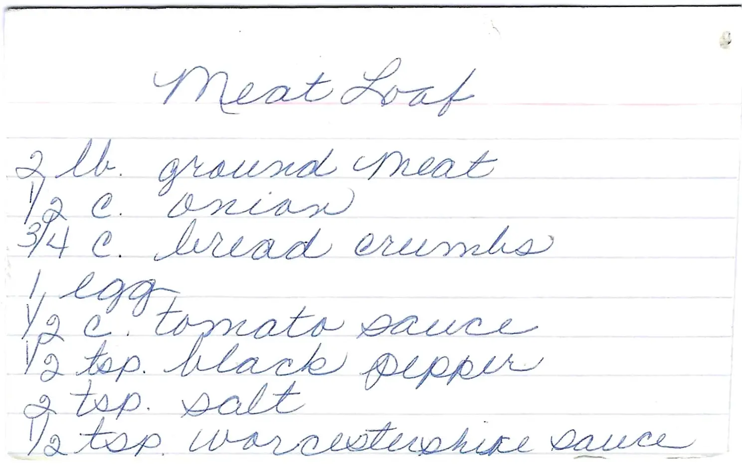 - In a large bowl, combine all the Meatloaf Ingredients: ground meat, chopped onion, bread crumbs, beaten egg, cup tomato sauce, black pepper, salt, and tsp Worcestershire sauce.
