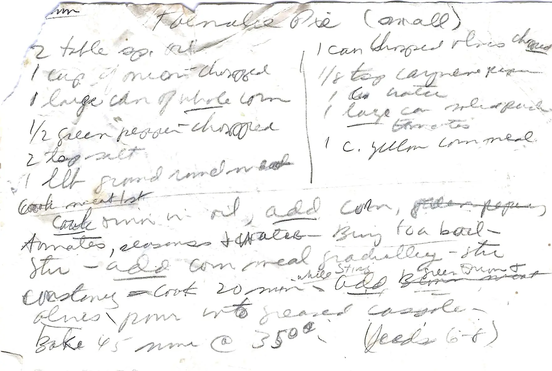 - Add the cooked meat, whole kernel corn, chopped green pepper, mashed up tomatoes, water, salt, and cayenne pepper to the pot.