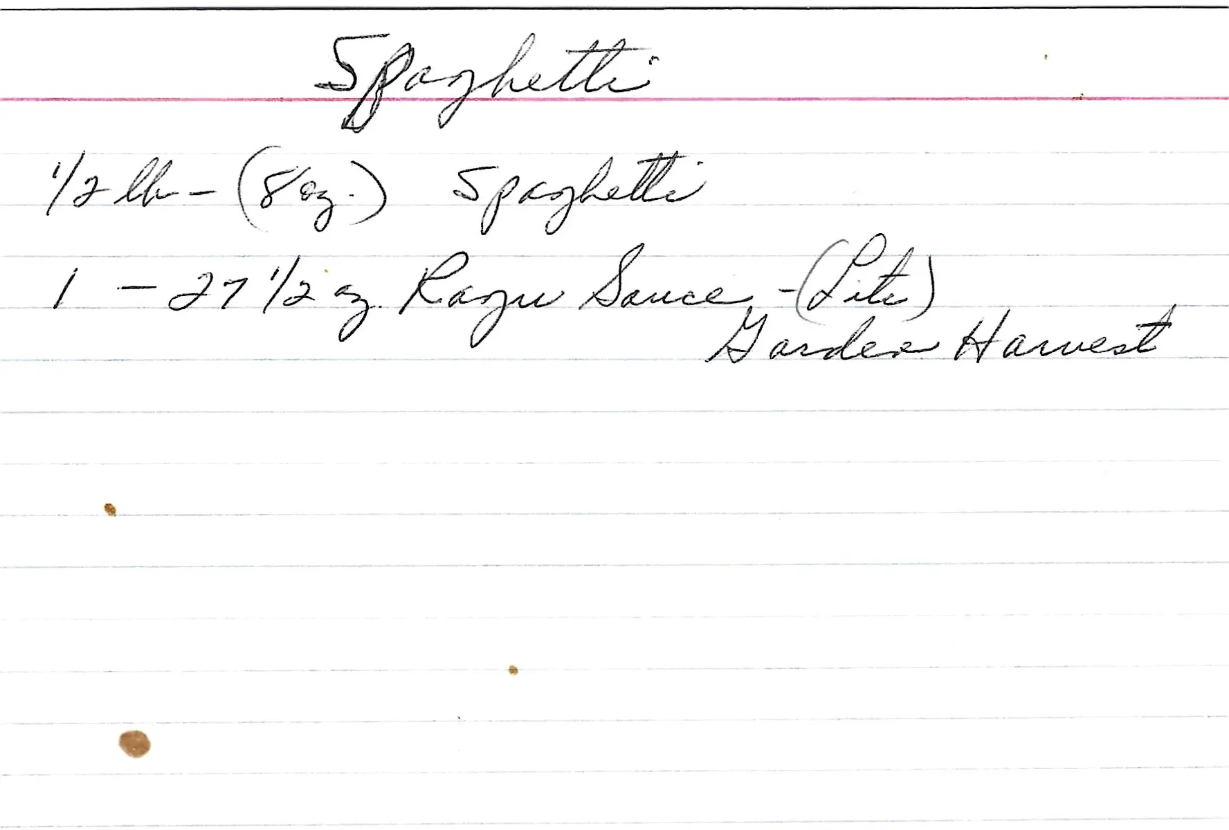 | 1 (27.5 ounce) jar | Ragu Lite Garden Harvest Sauce |